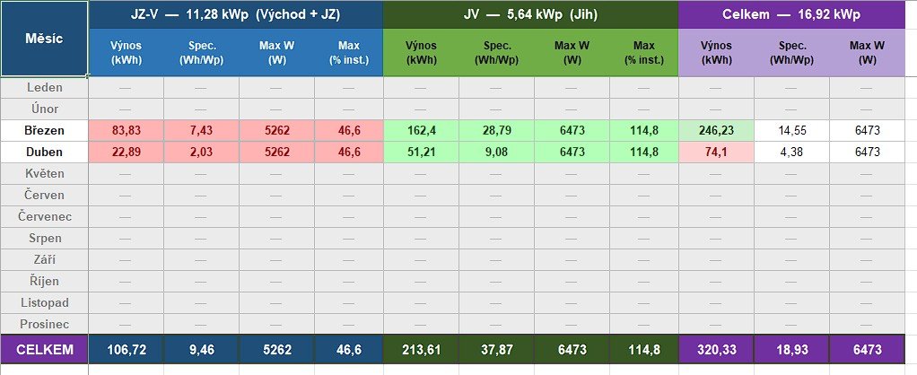17 kWp: 5640Wp východ, 5640Wp jihozápad, 5640Wp jihovýchod