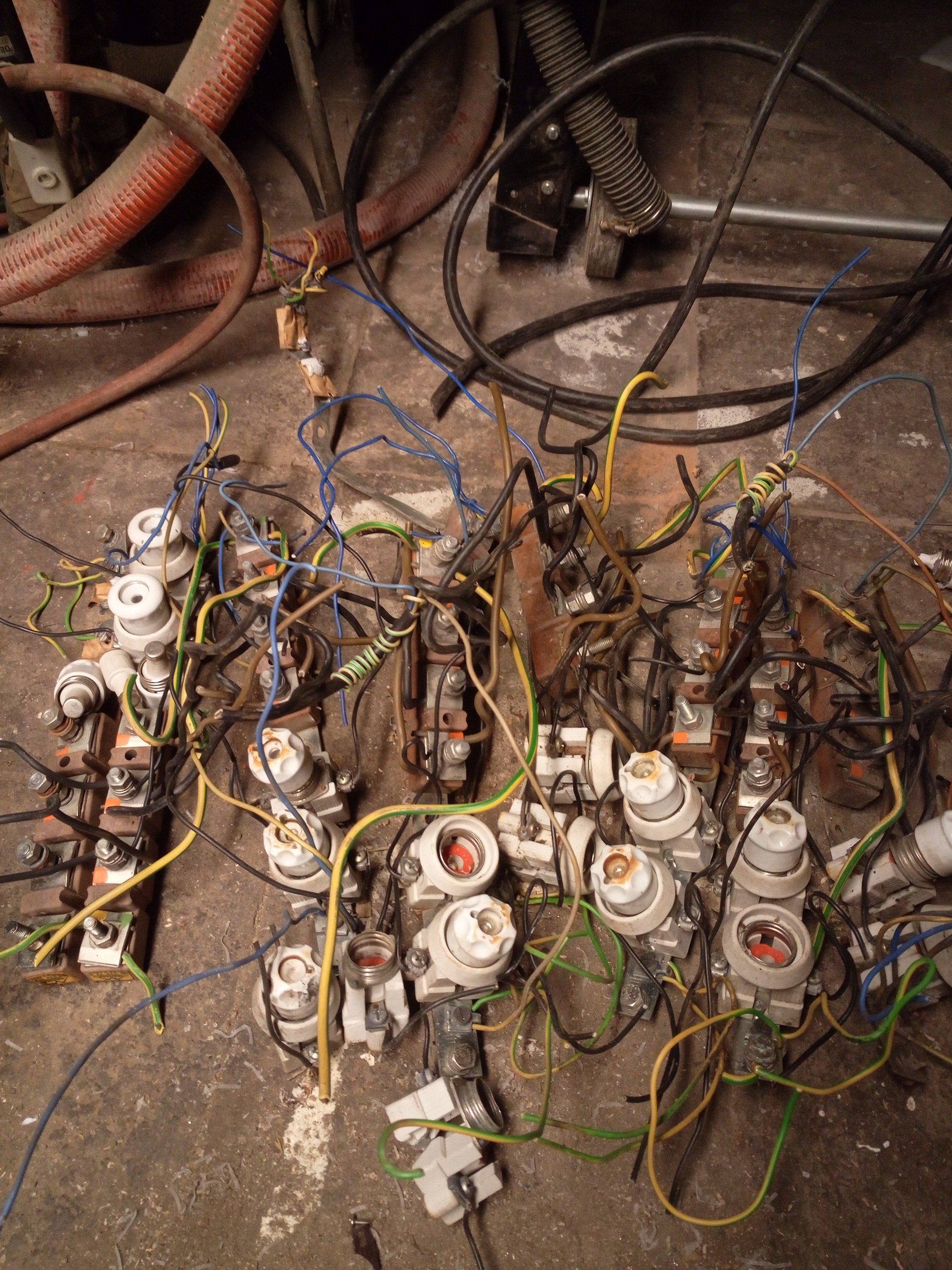 Co lampa, to bod nebo dva, rozdělení. Viz.modrý dráty. Natahaný průběžně 4x10, ke světlu dvax 3x2,5 přes dvě pojistky, jedna 25A, jedna 10A.