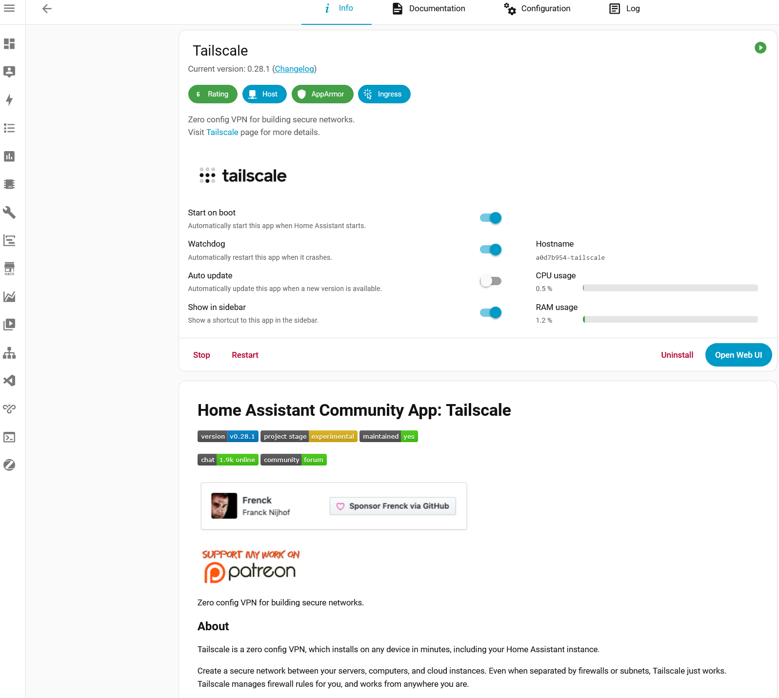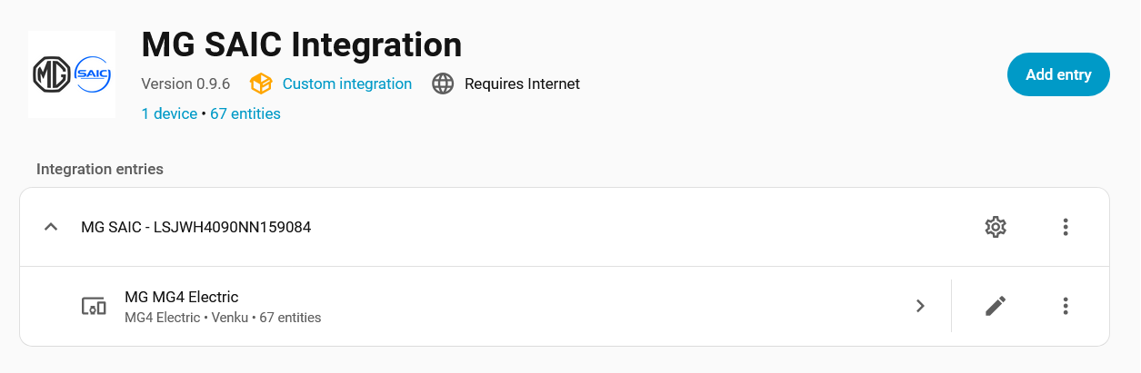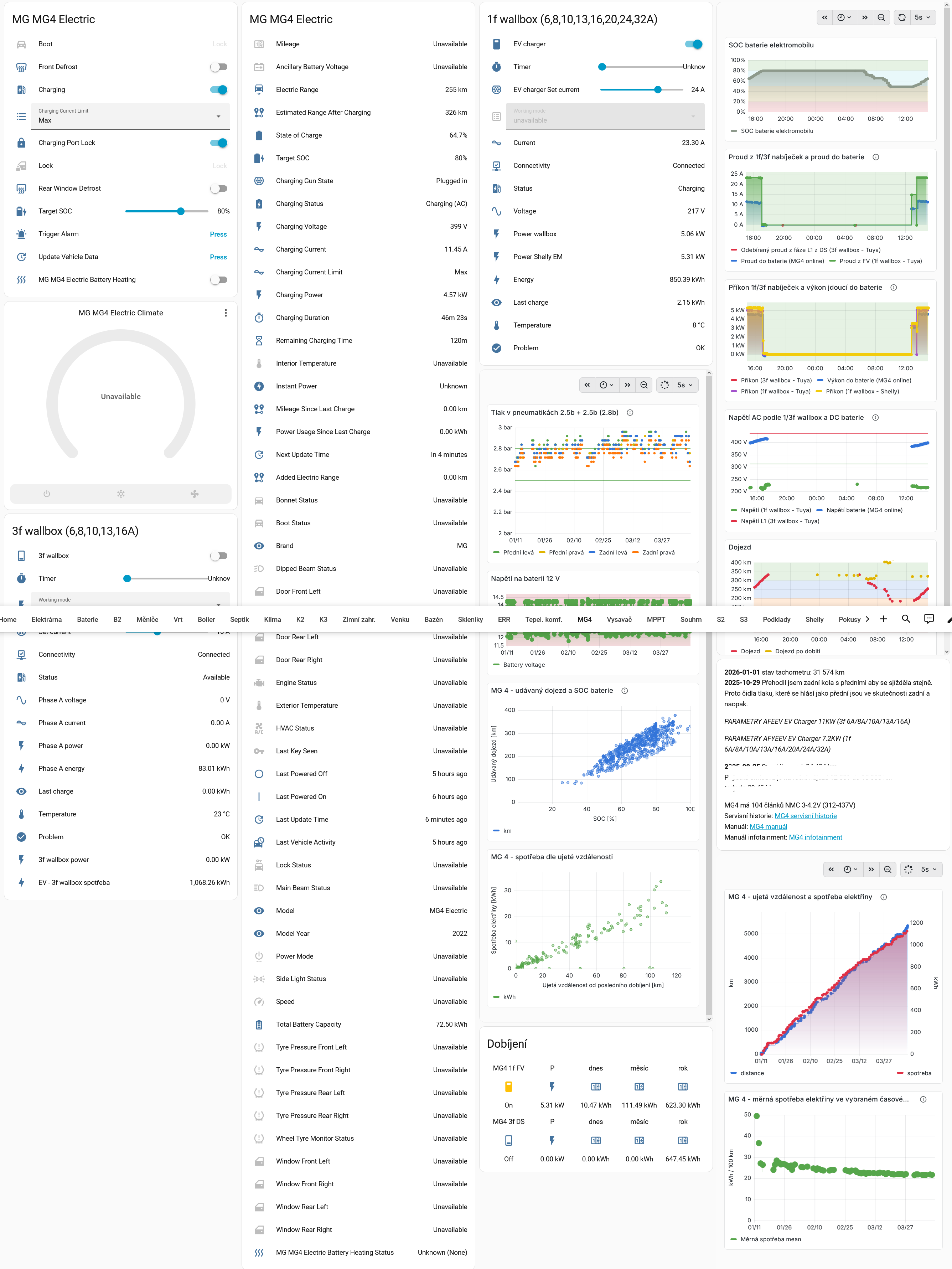 No ty čínské jsou pod Tuya. Stejně jako miliony dalších zařízení po celém světě. A reaguje to svižně. V aplikaci Smart Life to v mobilu vypadá nějak takto (aktuálně dobíjím 1f/24A): Ale proč bych to dělal z jejich aplikace, když to lépe mohu dělat rovnou lokálně z HA, kde to mám pod integrací Tuya Local. Do HA jsem přidal aplikaci Tailscale (VPN), takže mám vzdálený přístup z celého světa: A elektromobil rovněž sleduji z HA přes integraci MG SAIC: Vše potřebné je tak na jednom místě.