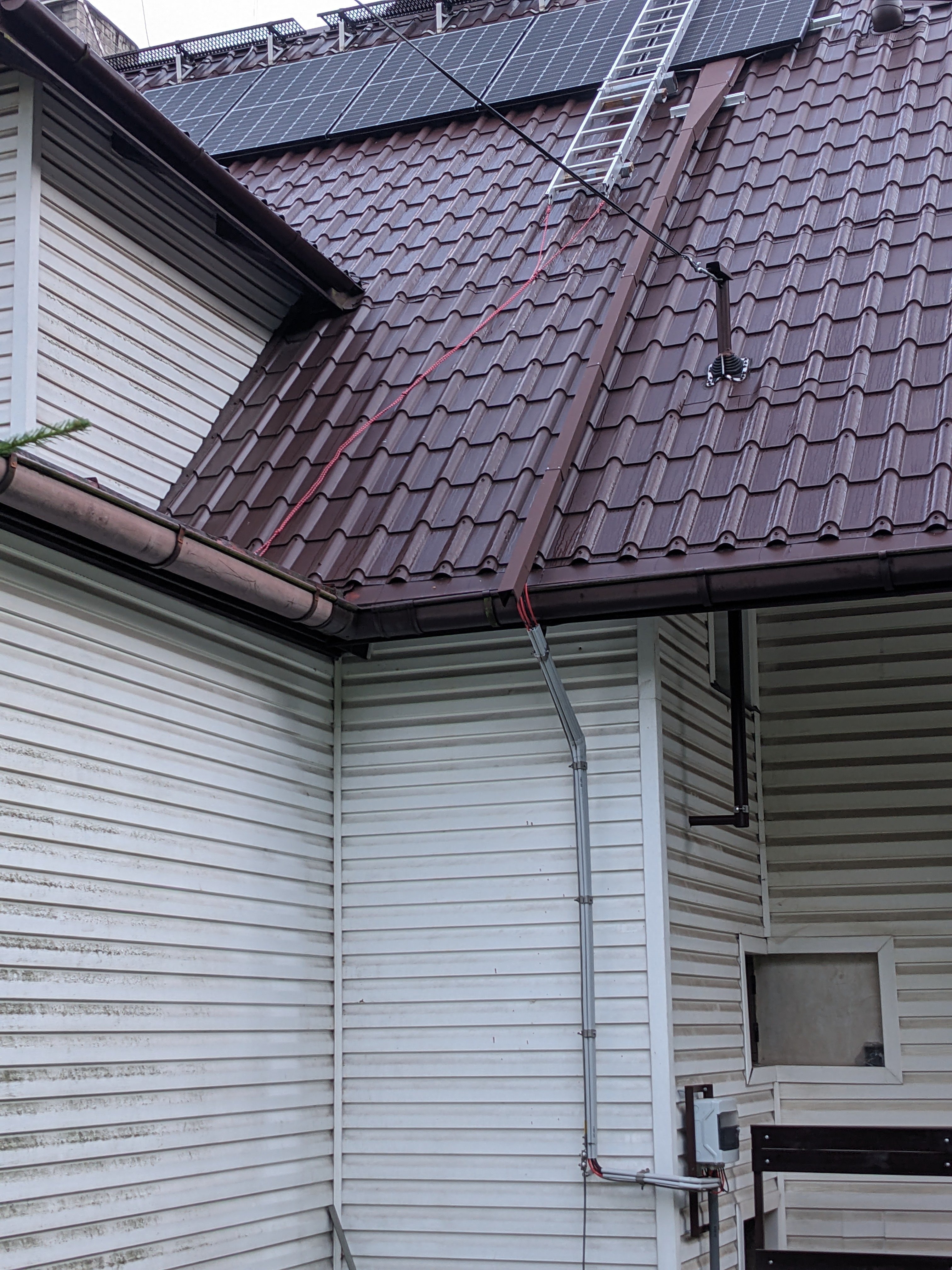 U sebe jsem to tak udělal, chráničky 16mm, v každé jeden kabel, připáskované k profilům. Svody jsem na střeše překryl Al plechem.