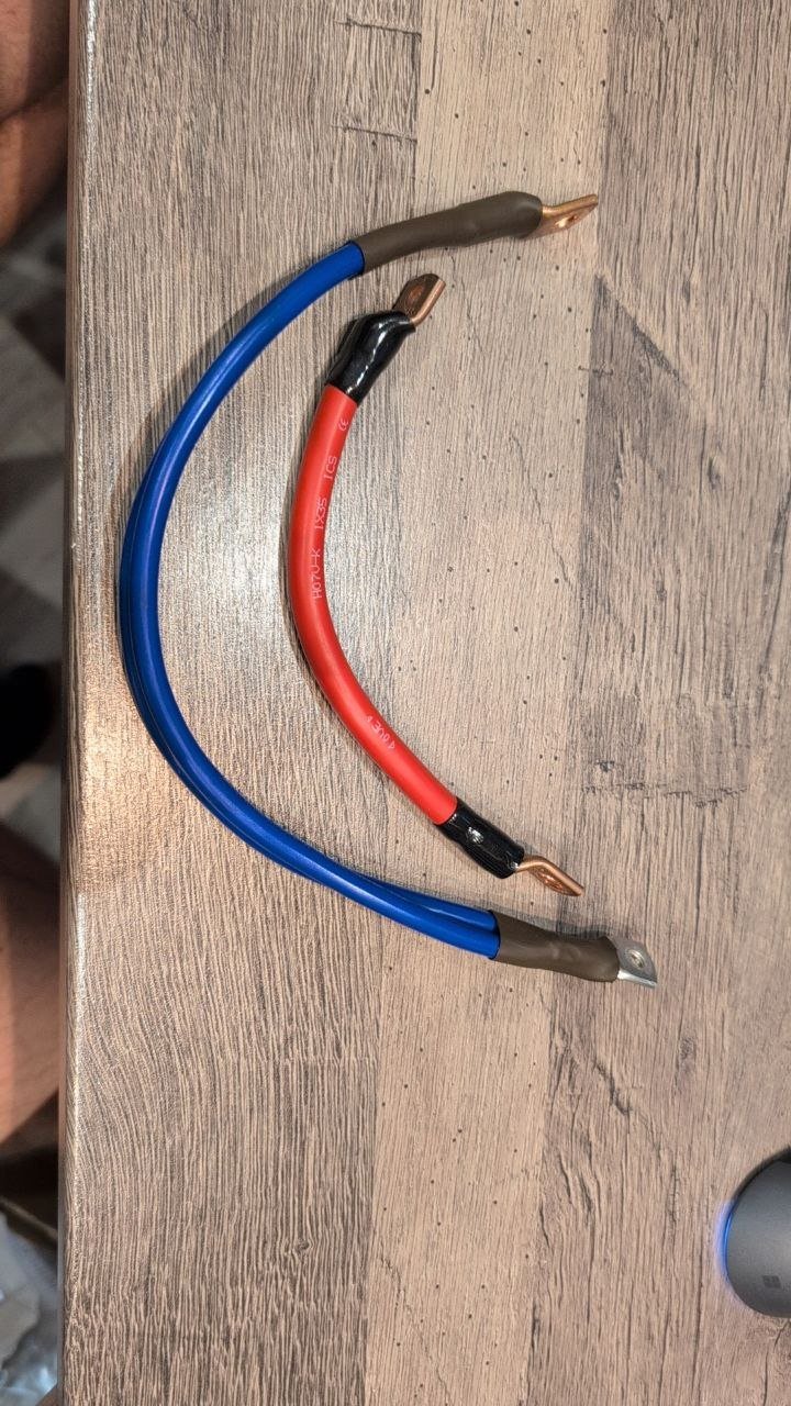 - můžu přibalit zdarma krátké propojky na baterie nebo pojistky ... Jedna strana M6 a druhá M8 (cerveny 35mm2 a modry 2x16mm2)