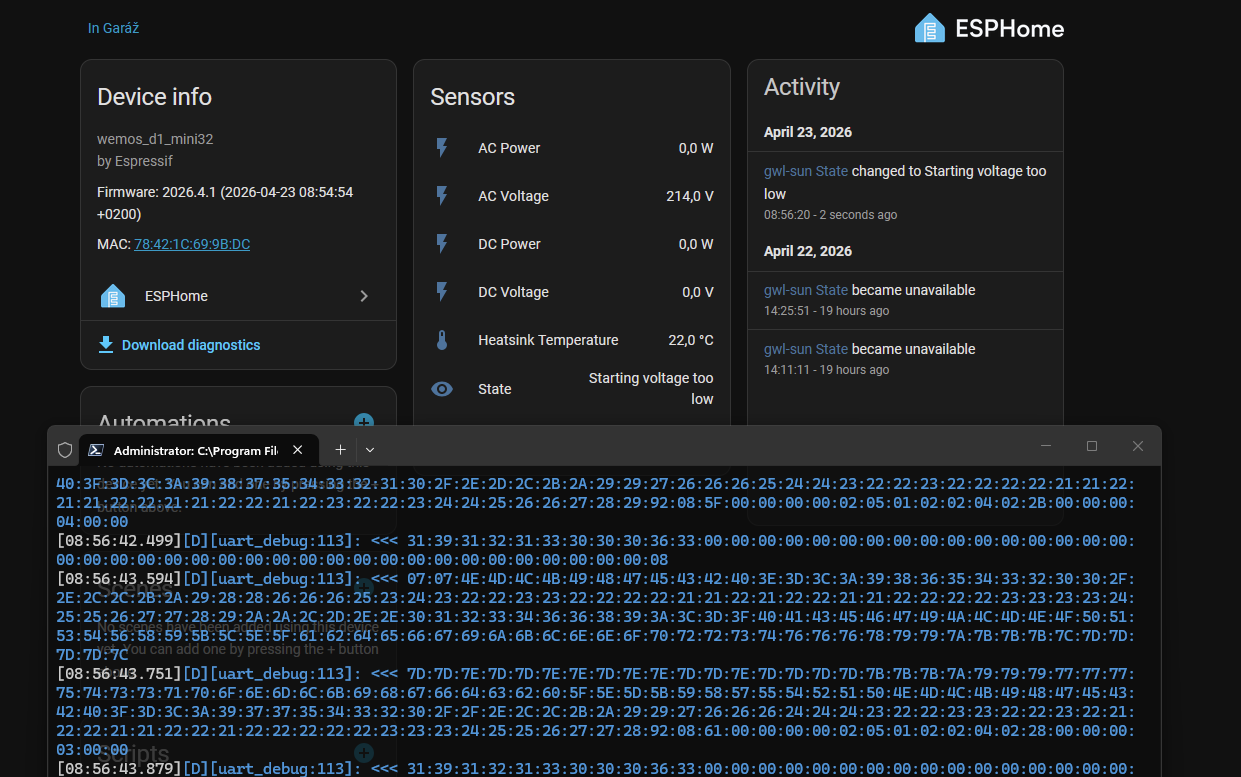 Do prilohy pak davam zdrojaky co jsem v esphome pouzival, nez prekopali komponenty. Pasivne poslouhat nestacilo, bezi tam nejaky modbus a muselo se ptat.