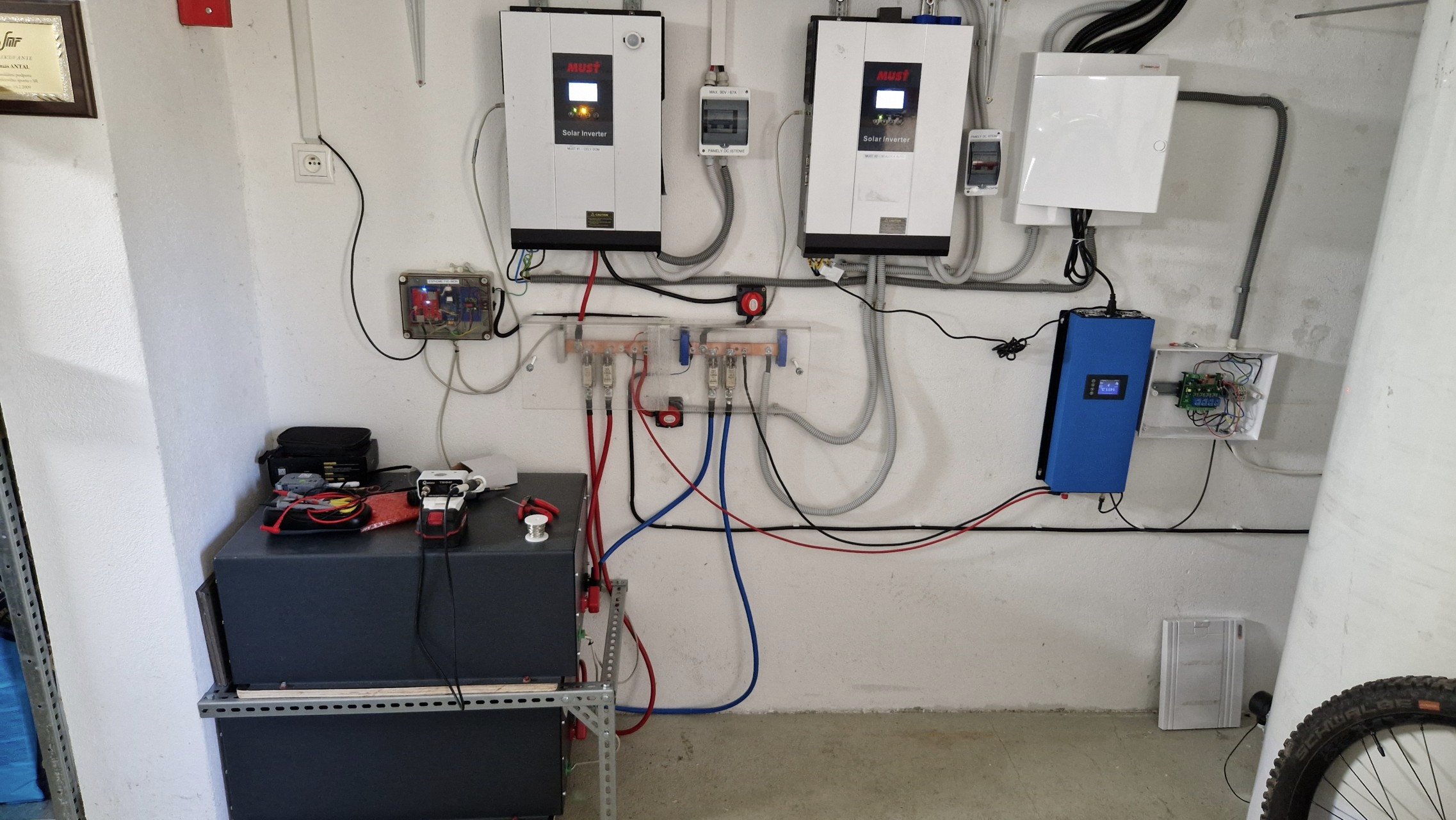 Modulárna rozšíriteľná FVE pod kopcom: 3s2p Amerisolar 285 = 1,7 kWp JJV + 3s2p 240 = 1,4 kWp ZJZ, Epever 5420AN, Epever 6420AN, 12 kWh 14s100p LiIon 18650 + JK BMS 200A, 18 kWh CATL 14s3p LiIon 115Ah +JBD BMS 60A, Epever iPower 5 kW