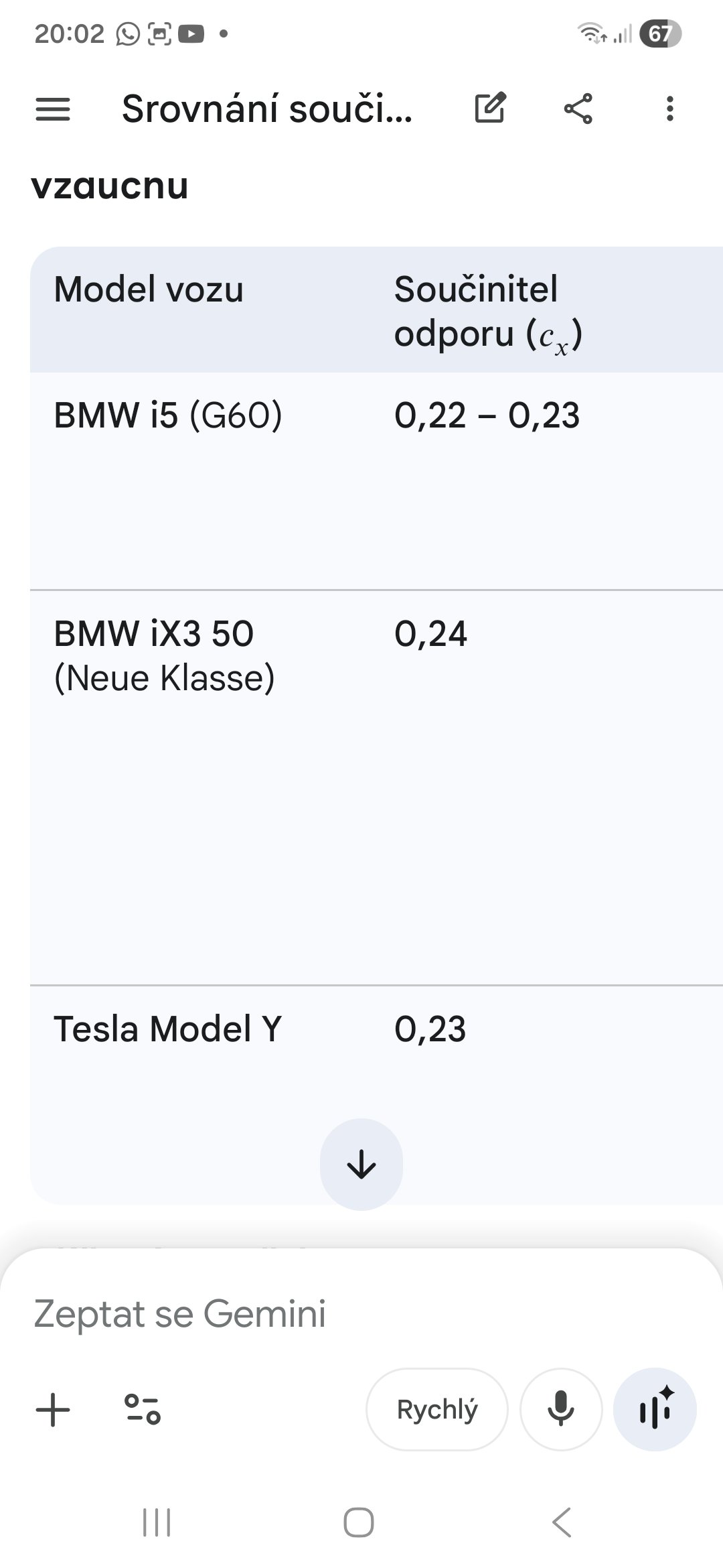 Jinak Marko ty součinitele odporu vzduchu jsou skoro stejný, budou mít na spotřebu minimálni vliv: