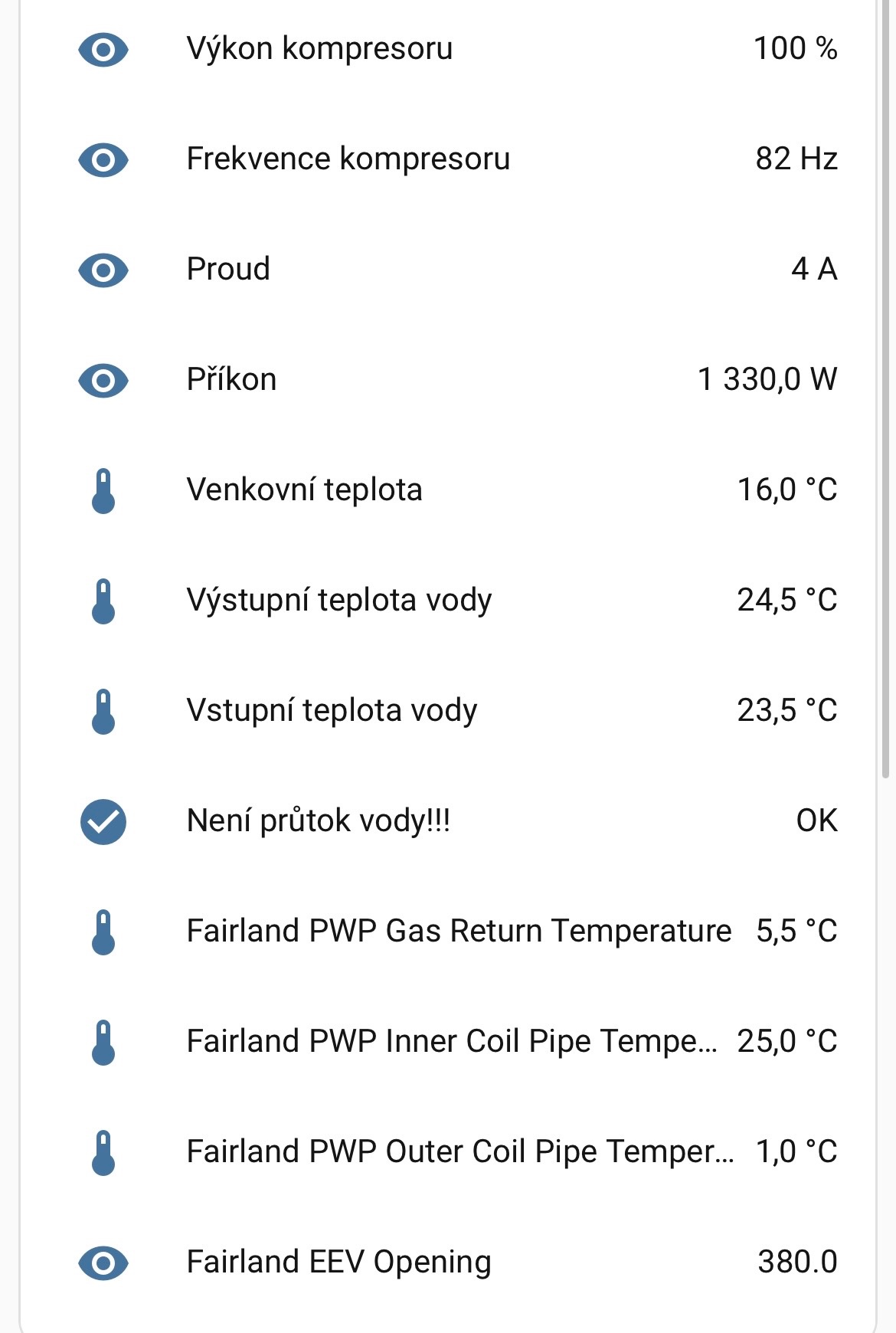 Ahoj koupil jsem tepelko s prasknutym vymenikem tak jsem nechal odsat chladivo abych ho zavaril. Kdyz se tam chladivo vracelo dalo se tam 800g ze neco zustane v hadicich a plnicce, na stitku je 750g a trosku se bojim ze tam je o neco vice protoze kdyz bylo venku 8C vyparnik trosku zamrzal v urovni trubicek co jsou v nem a to same silnejsi trubka u kompresoru byla trosku namrznuta. Ted kdyz je venku 15C tak vyparnik nenamrza. Trubka do vymeniku je varici takze vykon tam jde. Chtel jsem pridat do ESP32 teploty na chladivove casti registry 7,8,9 se mi podarilo pridat ale jak pridam 6(gas exhuast) temp) tak prestane cist uplne vsechny teploty. Netusi nekdo cim by to mohlo byt?Diky