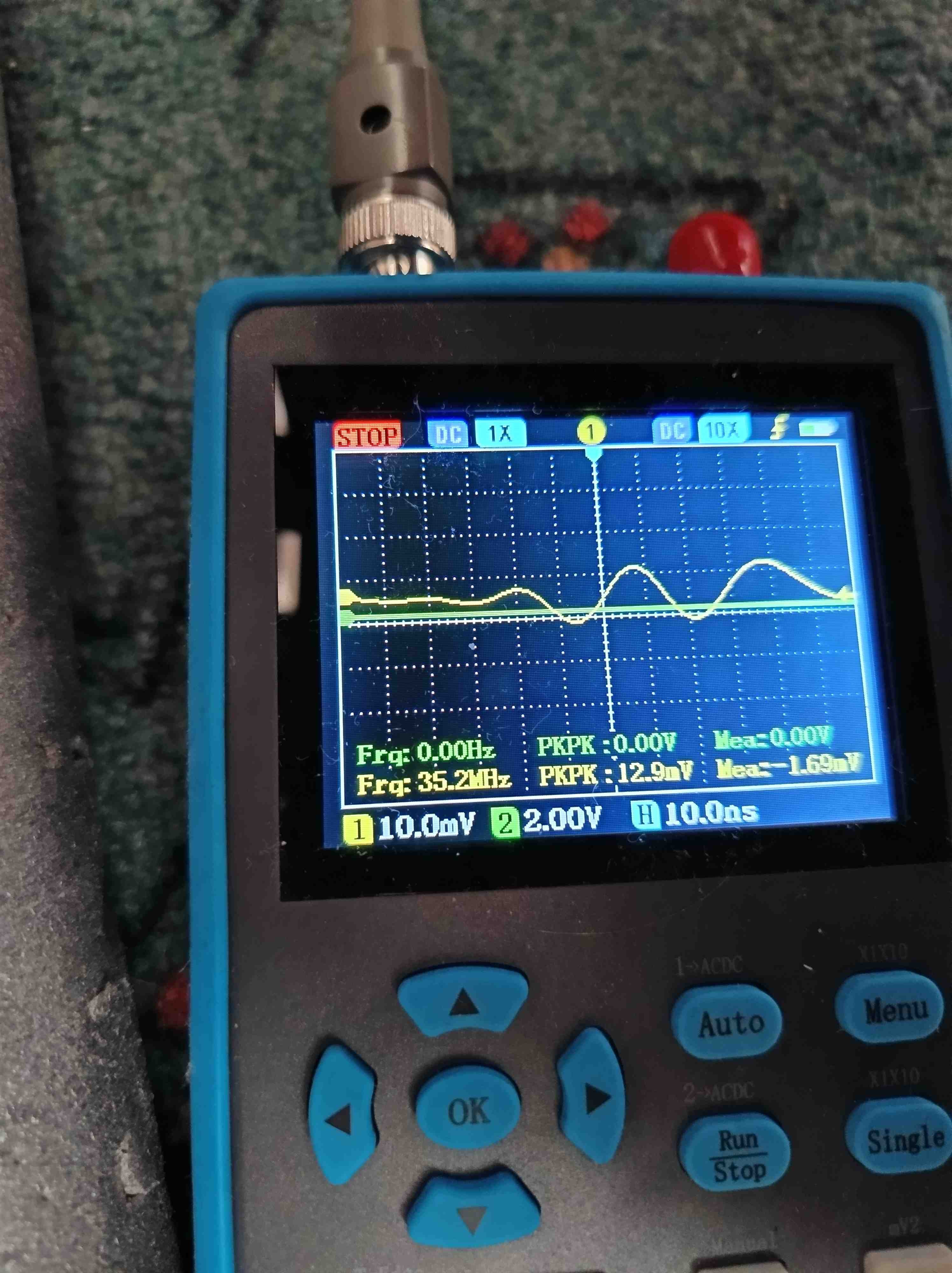 Ještě jsem osciloskopem hledal co je ten signál kolem 37 MHz, který jsem naměřil. Není to kontinuální signál, ale jsou to pulzy, které se opakují v pravidelných intervalech. Čert ví, co to je.