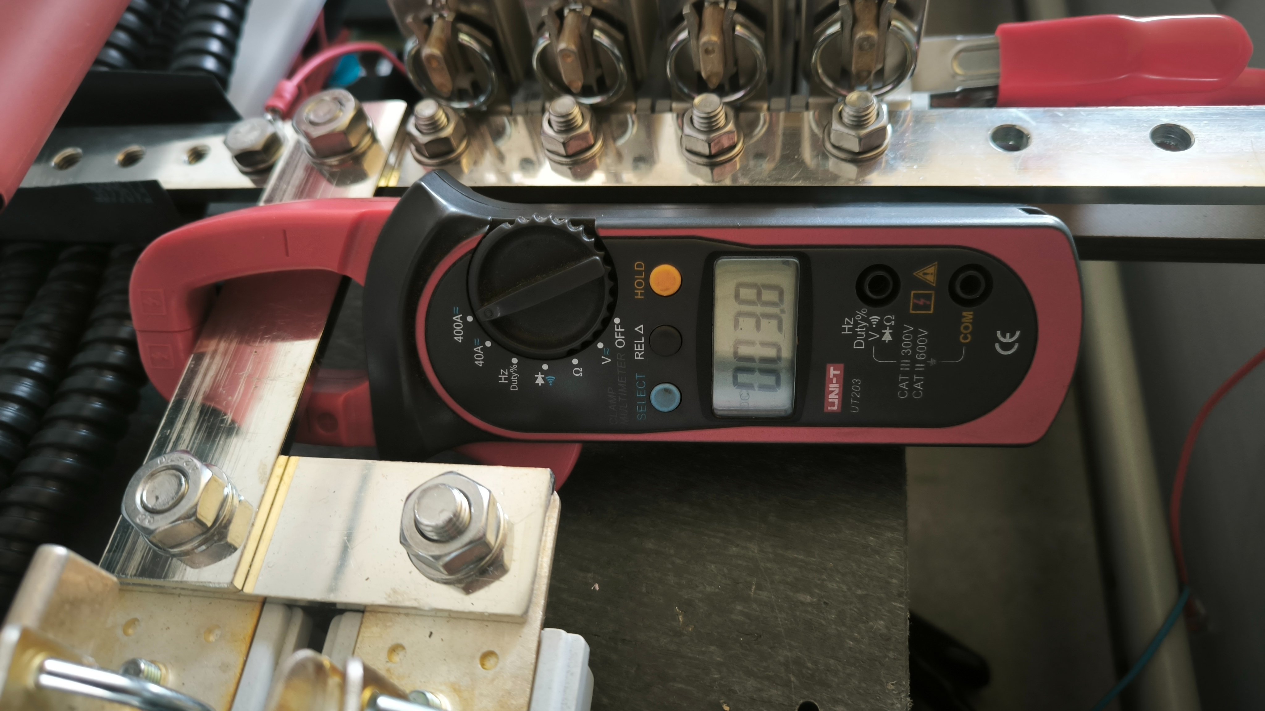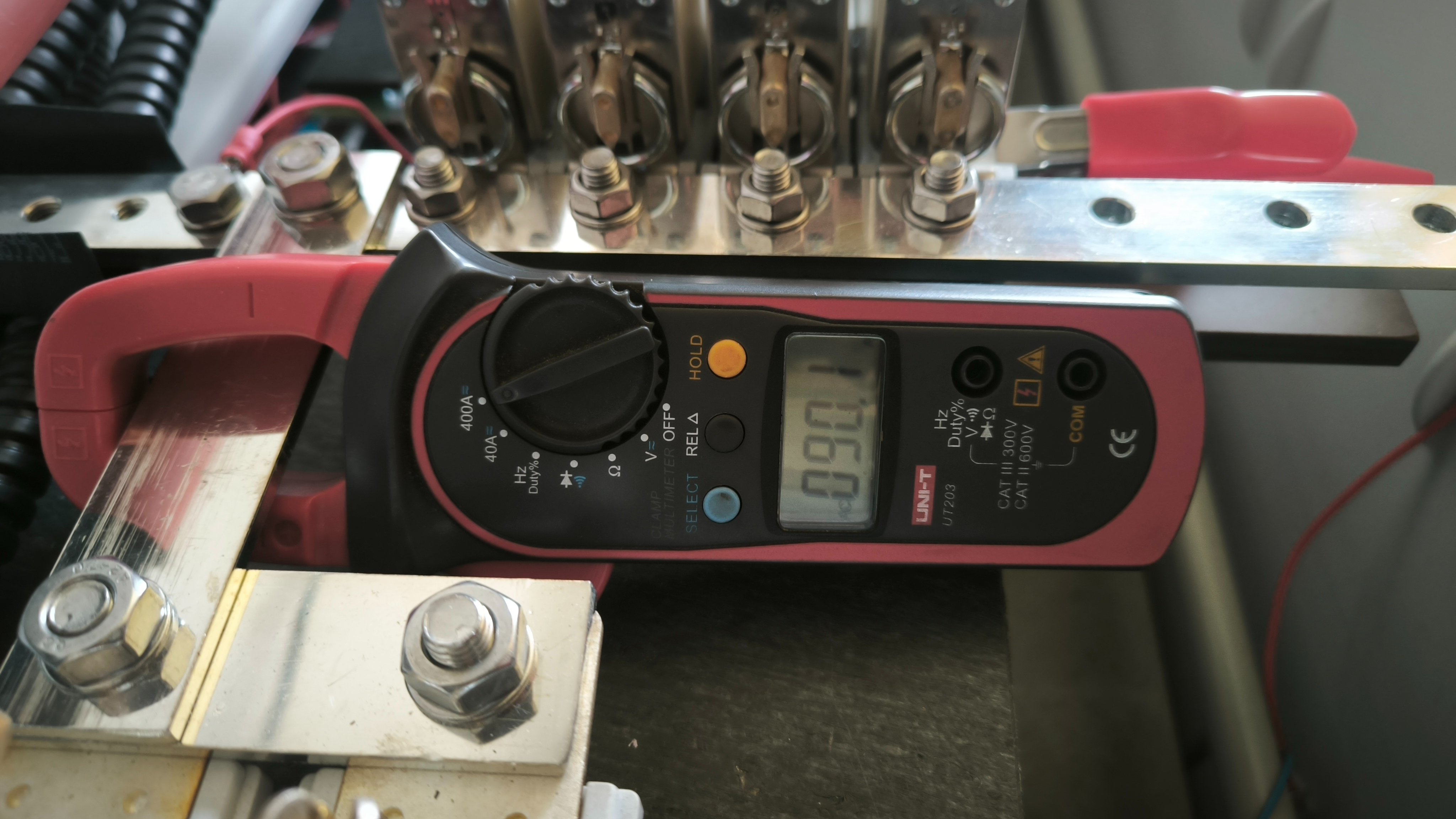 Zkusil jsem to změřit v tomto stavu přímo u baterie proud AC 90A proud DC 3.8A. Toho AC tam je dost, ale asi v normě baterie