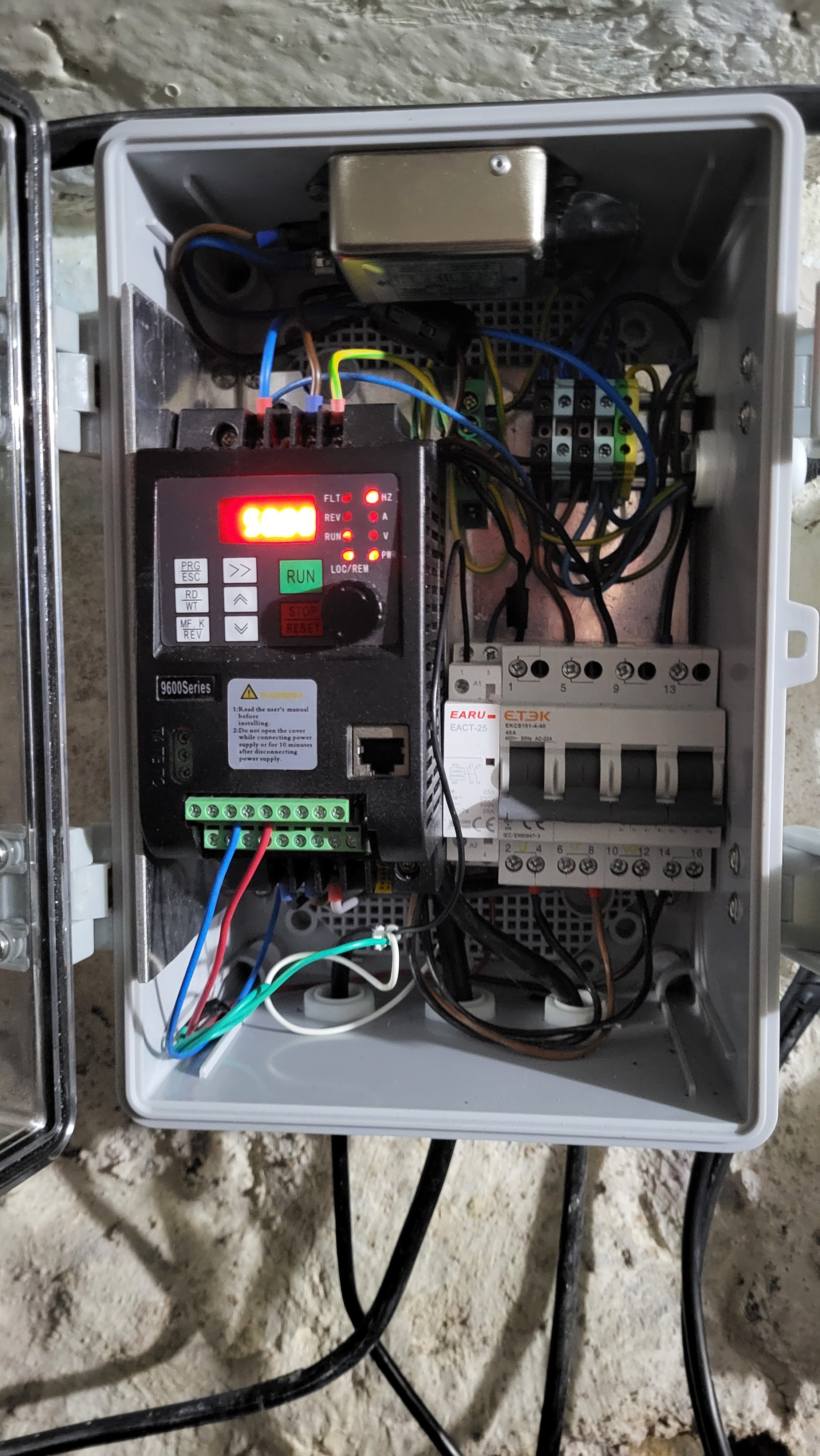 Jinak o víkendu jsem spustil měnič v režimu "trvale zapnutý" ale při zastavení motoru rozpojením smyčky ovládané tlakovým spínačem okamžitě shazuje proudový chránič. Zatím jsem to nechal takto a jen přepojil přívod před chránič, ale plánuju nakonec se vrátit k variantě studeného startu protože tipuju, že v tomto zapojení chránič padat nebude. Psal jsem výrobci jestli lze provozovat za chrániči a kdyžtak jakým ale zatím překvapivě žádná odezva