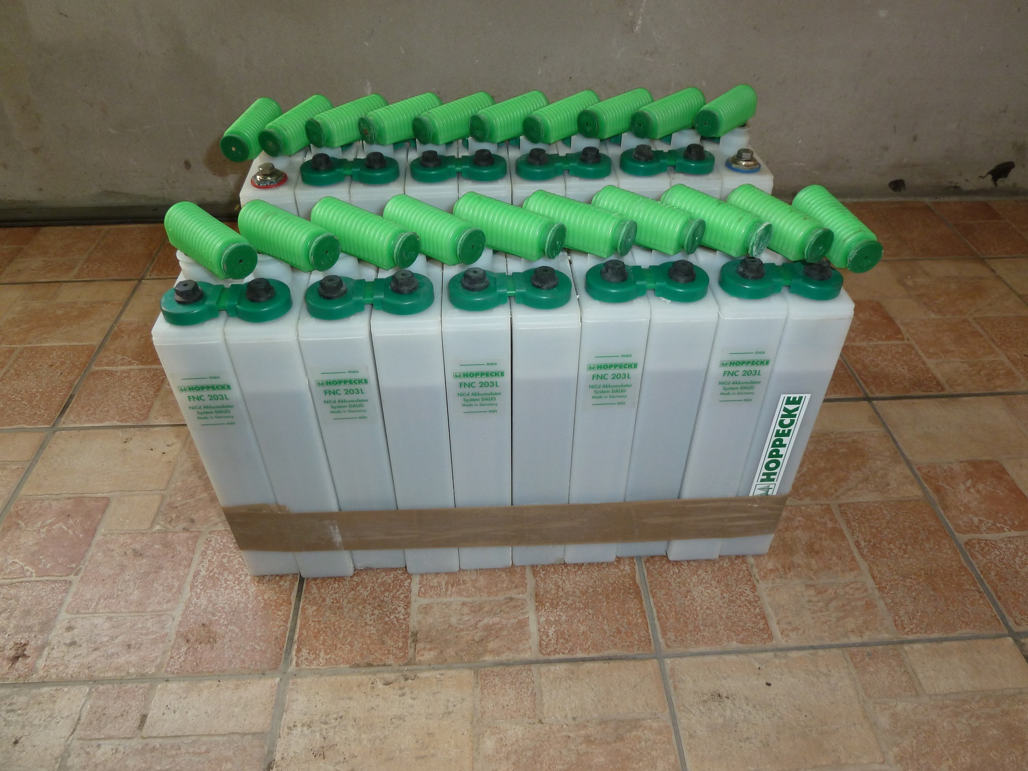 Nabízíme k prodeji baterie Hoppecke FNC 203L, 60Ah, 1,2V na článek, ve dvou sadách po 10 kusech, celkem 20 článků. Baterie jsou zánovní, staré cca 5 let, nikdy nepoužité a udržované nabité. Cena je 15 000 Kč za vše s možností slevy a dohody. Diskuze na fóru zmiňuje porovnání ceny s novými LiFePo bateriemi a vhodnost této nabídky pro menší instalace.