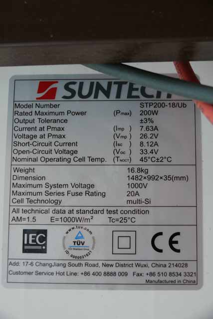 Zdroj energie: 4ks polykrystal FV panel s výkonem 200Wp značky Suntech.