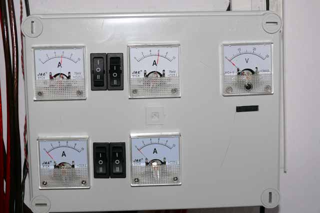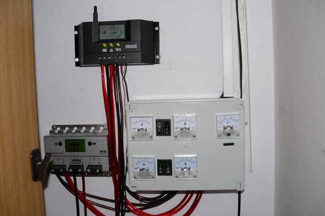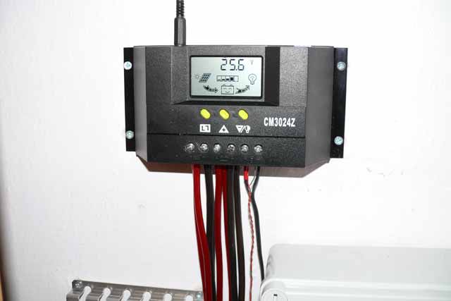 Druhý regulátor je příprava pro druhý okruh (druhá UPS), na který by časem měly být zapojeny světla. Dále zvažuju, že WR20-12/24 vyměním za Juta CM5024 (12V/24V - 50A). Jednak proto, že 30A z CM3024Z bylo ve špičkách občas málo - zapnutí prodlužky s TV a satelitem dělalo špičku, kterou CM nepustil a APC vyplo. Vyřešil jsem to tím, že jsem dal do APC 2ks 5Ah gelovek pro pokrytí těchto špiček a také se tím na APC vyřešila chybová signalizace vadné bateie při přepnutí na ČEZ. WR20 by sice na světla stačilo, ale oproti CM3024Z namá téměř žádné možnosti nastavení. Takže bych měl CM3024 na světla a CM5024 na zásuvky