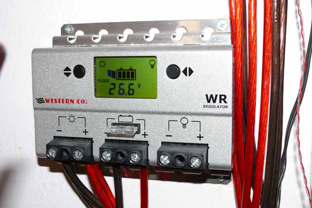 Regulátor: Western Co. WR20-12/24 (20A) + Juta CM3024 (30A).