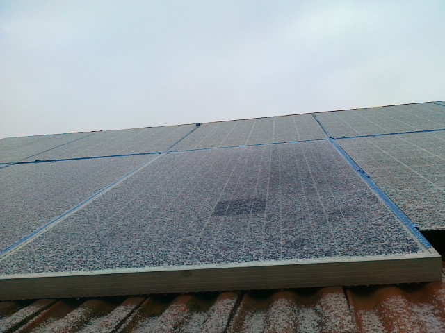 To na něm není námraza, jen se nějak jinak leskne a odráží se v něm jinak obloha. Jako by byl mokrý. Teď už na panely svítí, ale změřením teploty jsem nic nezjistil, je stejná, jako jiné články i na jiném stringu. Ale stejně ho budu častěji kontrolovat.