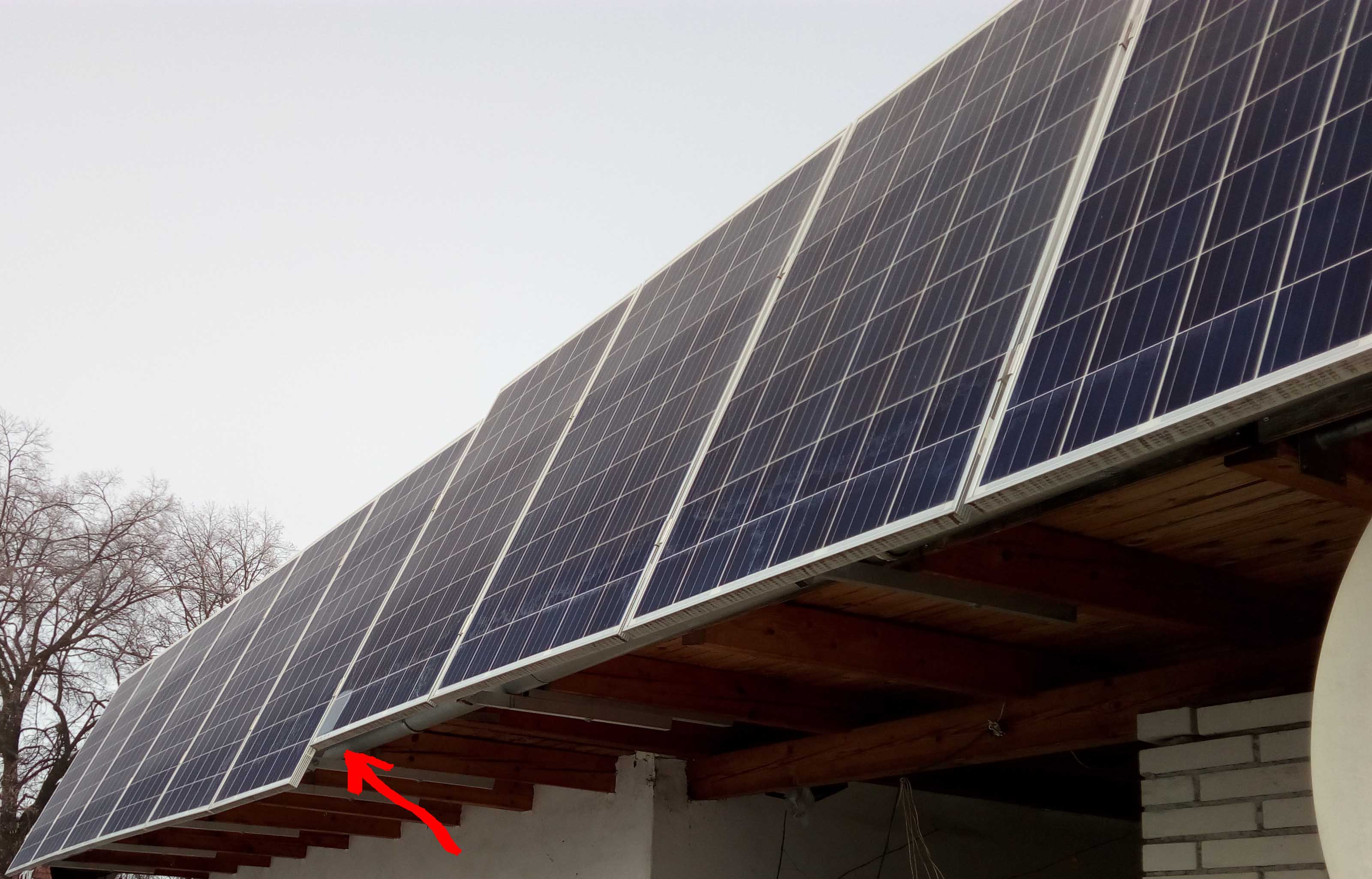 Panel asi vyreklamovat nepůjde vzhledem k tomu že byl z druhé ruky a s tímhle problémem jsem taknějak počítal. Ona je stejně jedna řada článků zkratovaná, protože string má 3 panely po 60 článcích a jede paralelně s dalšími 3 panely po 54 článcích. Takže takhle je to 162 a 160 článků paralelně a krásně spolupracují.