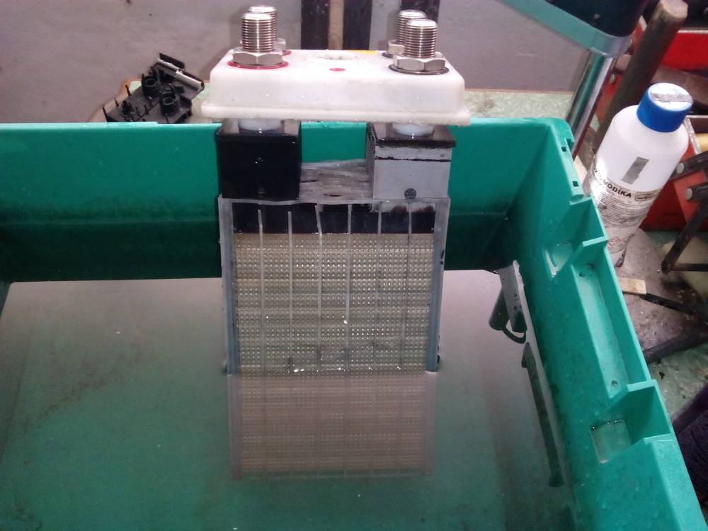 Ten repas som zobral tak "po svojom". Rozrezal som najhorsi clanok, usadeniny vylial do nadoby (pojde do zberu nebezpecneho odpadu) a skumal. Prekvapili ma celkom zachovale kladne a zaporne desky. (obr. 1, 2, 3,) Horsie to bolo so separatormi. Boli cierne od usadenin (povodne biely plast). (obr. 4) Tak som rozobral dosky a separatory (vsetko som robil pod vodou) a vsetko vycistil umelohmotnou kefou. Ten uhlik zo separatorov sa nedal nicim rozpustit. Skusal som Arvu, Peroxid, Aceton nic s nim nehlo tak som musel kefou mechanicky. Po vycisteni poskladal a zatavil plastovy obal clanku, nalial NAOH roztok. Na skusku som takto vycistil 3 clanky, minimum koli nabijacke. Dalsie clanky uz neboli tak zachovale co ma zamrzelo. Separatory viac zakarbonovane a elektrody zahrdzavene. (obr. 5, 6, 7,) Bolsom prekvapeny, po prvej kapacitnej skuske, ze tie zahrdzavene clanky mali vyssiu kapacitu ako ten prvy na pohlad zachovalejsi, ten uz musel mat znicenu aktivnu hmotu vo vnutri dosky. (60Ah vz. 30Ah, povodne vsetko do 20Ah) Viem, stale slabota, ale uz su pouzitelne.
