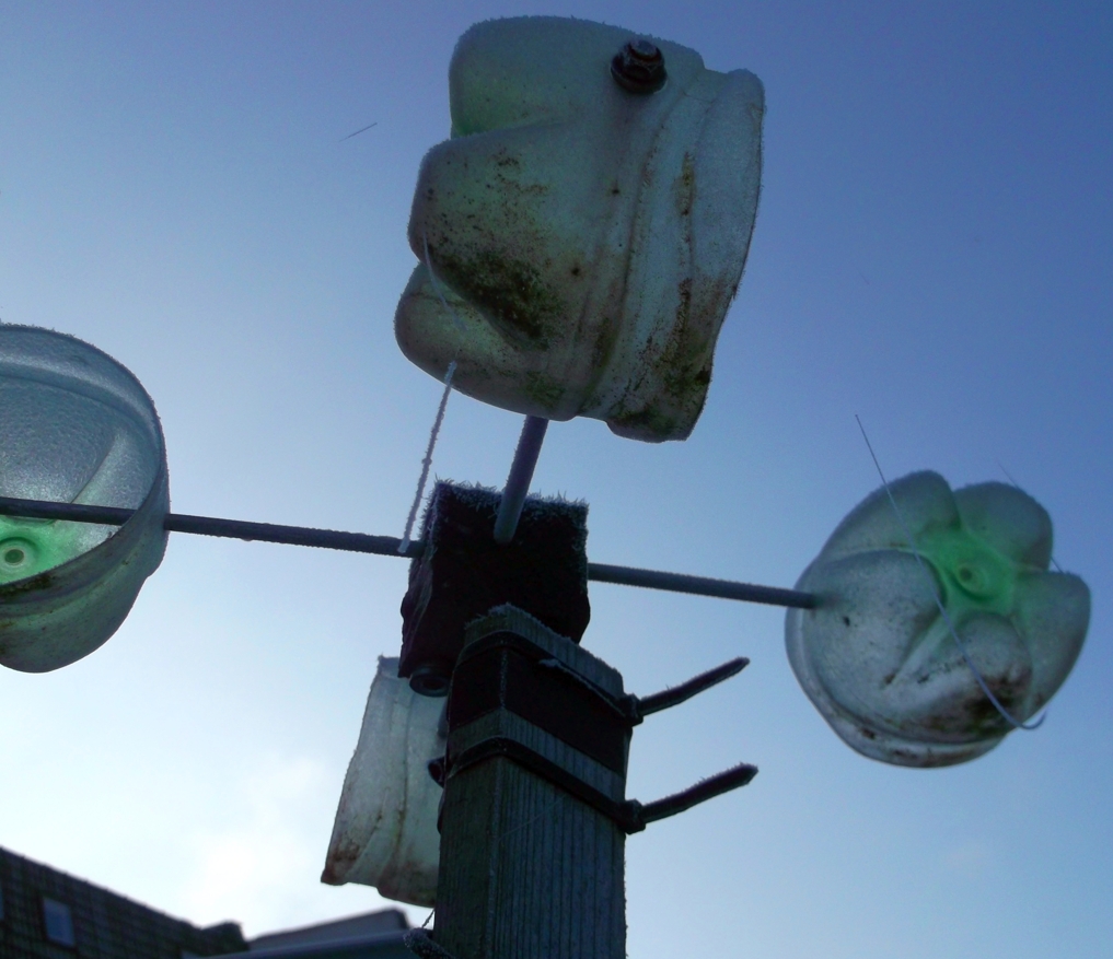Vyjadril som svoj pesimizmus, je podložený hi-tech meraním. Zbastlil som si za pár minút anemometer a ten mi ukázal, že na pomyslenom bicykli by ma vietor za dva roky povozil 14 km. Pravda, keby neboli žiadne mechanické ani hydraulické straty. Problém je ten, že turbíny štartujú pri vetre cca 3 m/s bez záťaže. Akonáhle ich slabo zaťažíte, potrebujete výrazne silnejší vietor a ten je silne deficitný. Moje hanbaté obrázky by som nezverejňoval, keby som si dnes nevšimol pavučinu medzi dvomi lopatkami. Odkedy tam je?