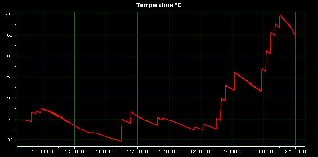 Therm 02 je teplota fototremického absorbéru. Vzhledem k nízkému elevačnímu úhlu funguje fototermika většinou v únoru jen jako předehřev TUV. Dohřev provádí fotovoltaika. Od března pak již většinou funguje fototermika bez nutnosti dohřevu až do října.