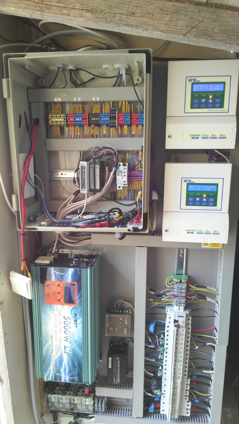 ostrov skoro 8kWp neustále ve stádiu zrodu: smartshunt(ex WBJR), MPPT150/45, MPPT 250/100(ex midnitesolar 150 clasic lite), 16S a různě P cca 340Ah Winston, MP II 5000,( ex Powerjack 8kW, ex samodomo cca 4kW). 48V DC rozvody a spotřebiče.