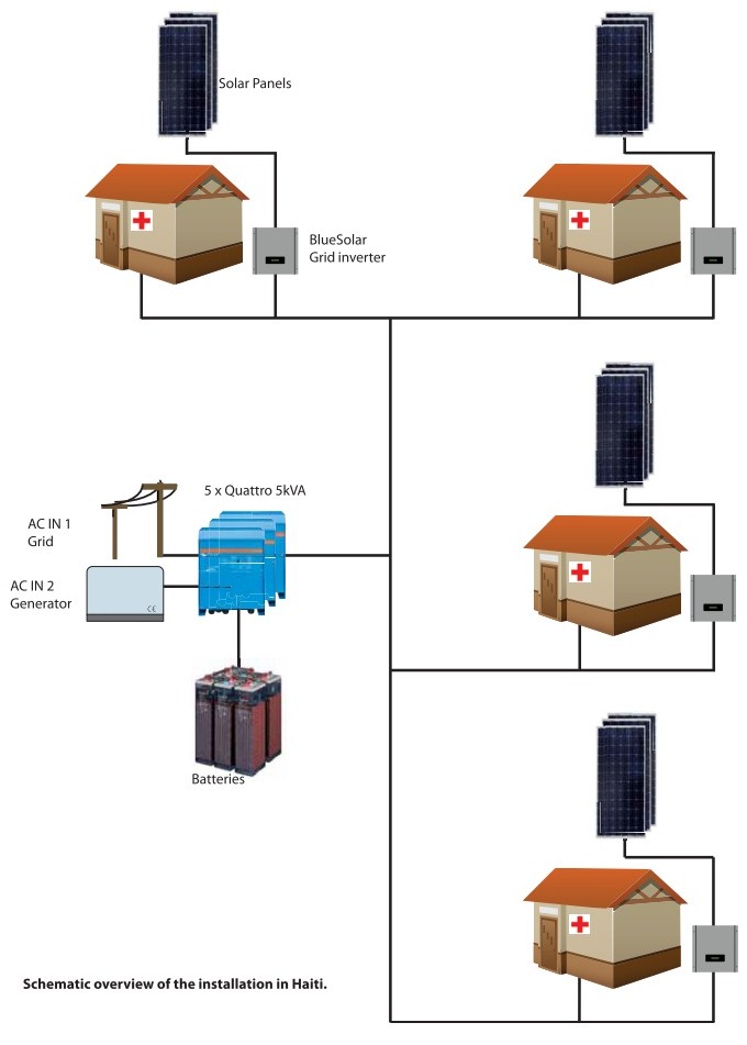 Je to velká investice, protože vždy musí být jeden měnič, který pracuje s frekvencí. DC rozvody na "380" nemyslíte vážně. Victron takové síťování má dávno v prospektech takže zkuste to přepočítat do peněz a potom diskutujte kdo bude ochoten takovou investici respektovat. Také nevýhody protože se projekt hodí kvůli spolehlivosti jen do opravdu osluněných oblastí.