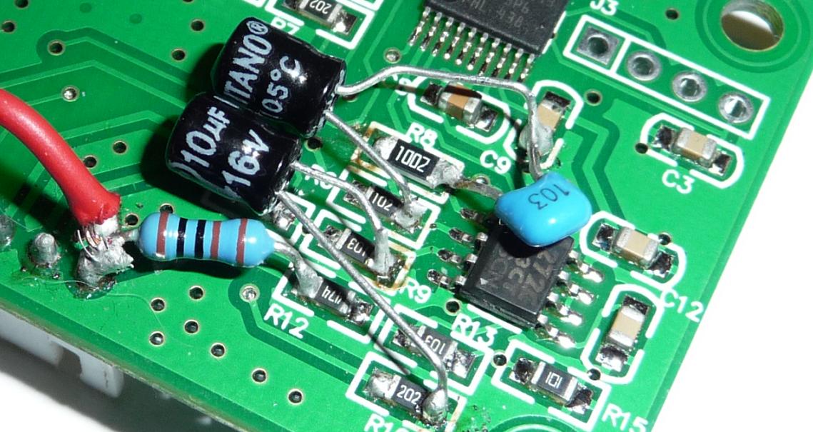 - k OZ přidány tři kondenzátory , dva elektrolitické 10uF 16V a jeden keramický 10nF viz. foto , tato kombinace stabilizuje měření proudu oběma směry a také značně stalizovala odchylku měření Ah k čemuž přispívá i keramický kondenzátor ,