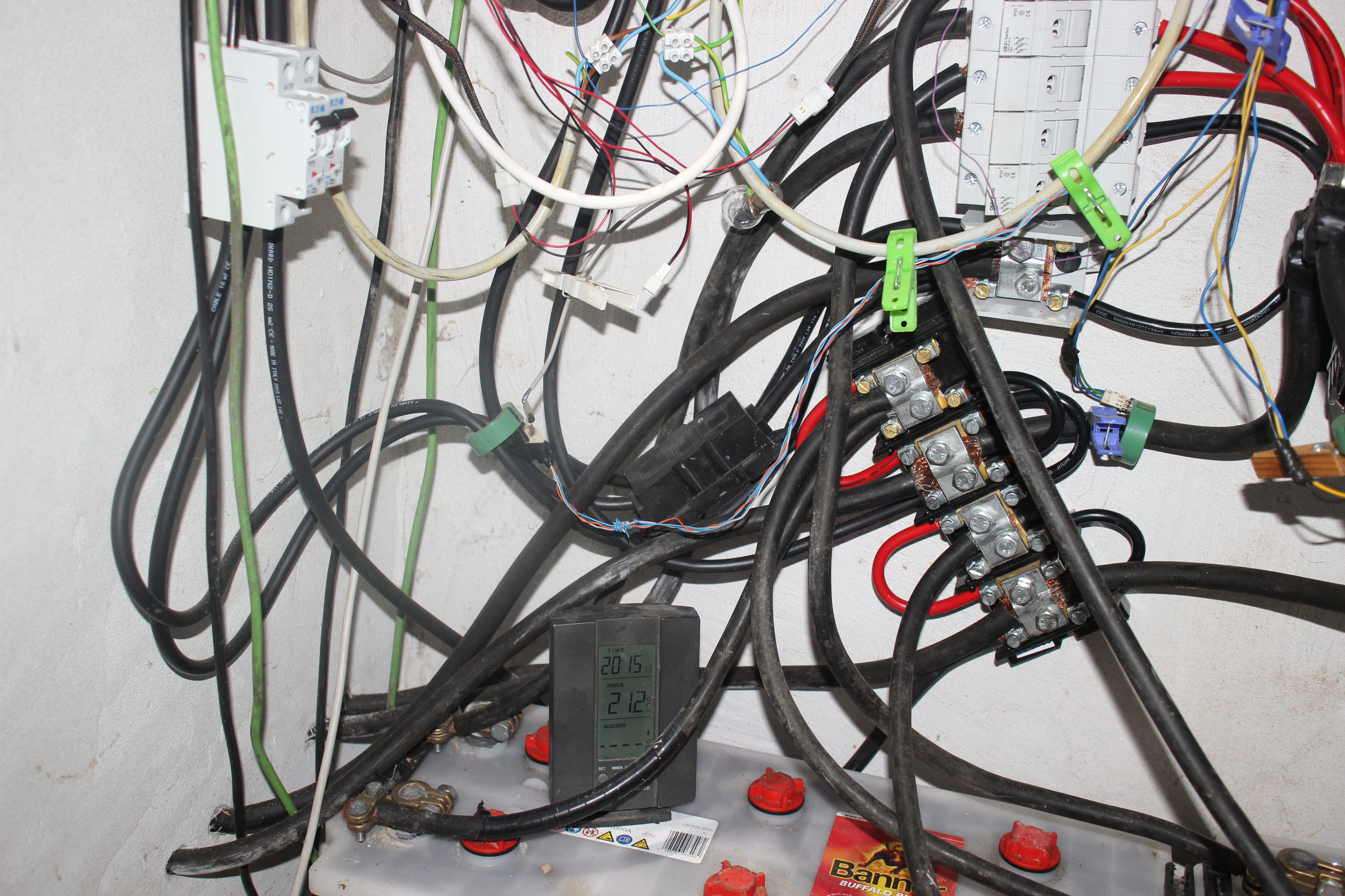 Celkovo je v el. 4 x 255 W Kyocera/IBC Poly, Trojany 4 x 390 Ah, Bannery 4 x 180 Ah,