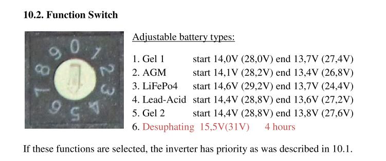 Já nevím jak tristar přesně nastavit, ale zkusil bych dle návodu buď L- 16, ale toto nastavení pere do baterie maximum jen 3h což je málo. Rozumnější by mohlo být On On On, přes ten MSview zkusit jít na maximum co měnič pojme bez vypnutí, což by mělo být něco pod 32, podle návodu.