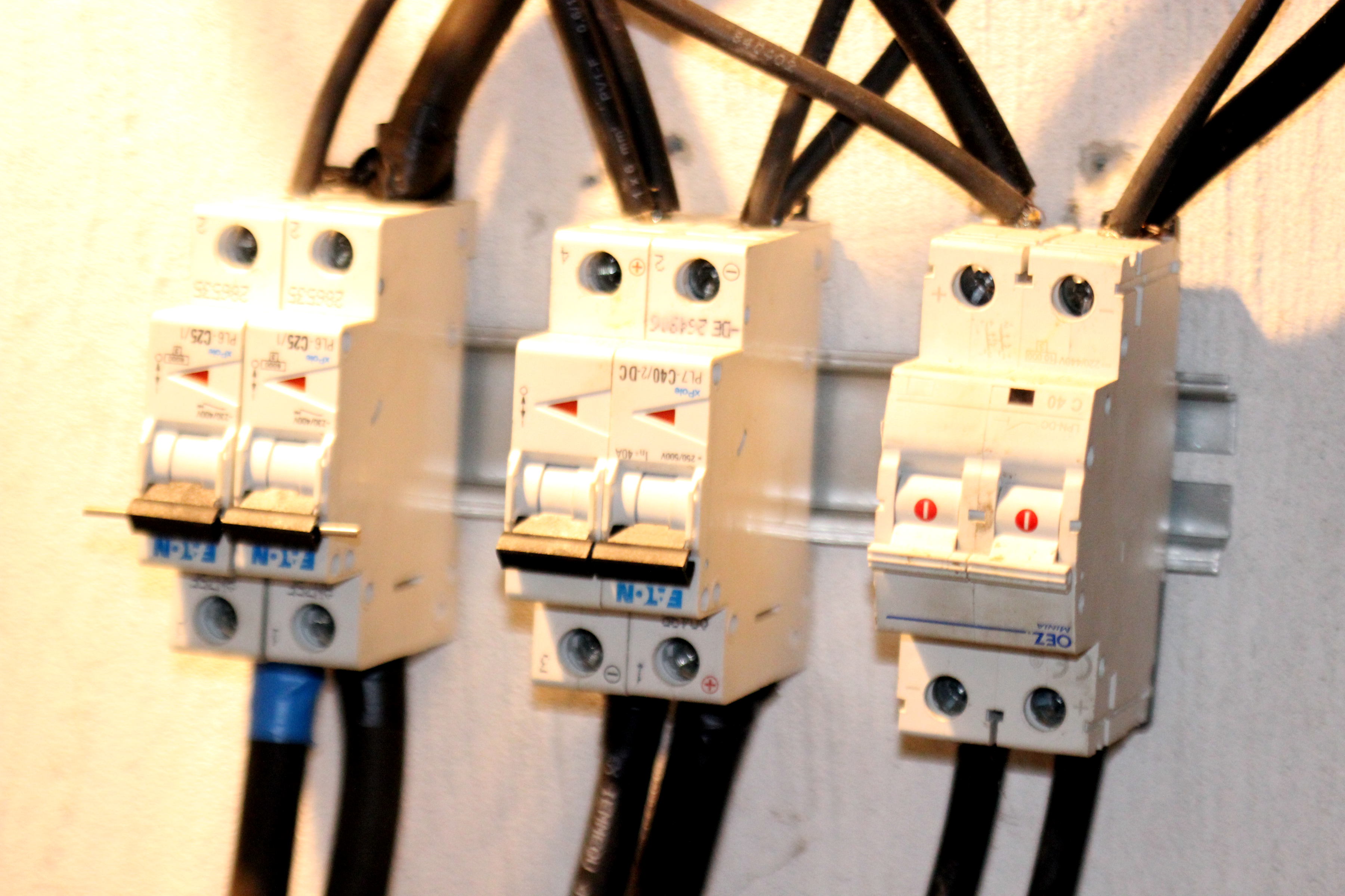 Hezká práce,Pavol.Hlavně se mi líbí ta svorkovnice na DIN liště ,co máš mezi elměrem a jističem.Nevěděl jsem,že něco takového prodává,určitě to využiji.Jen jsem se chtěl zeptat,jaký význam má obrácení těch DC jističů vzhůru nohama - je to tak,že teče proud vždy jen ze zhora dolu nebo obráceně?Používám tyto jističe mezi bateriemi a regulátorem/měničem v jednom,takže tam ten proud teče jednou tam (když se baterie dobíjejí) a jednou zpět (když z nich měnič cucá šťávu).Podle katalogu OEZ je mám zapojeny tak,aby primárné ochránily baterie proti zkratu na regulátoru.