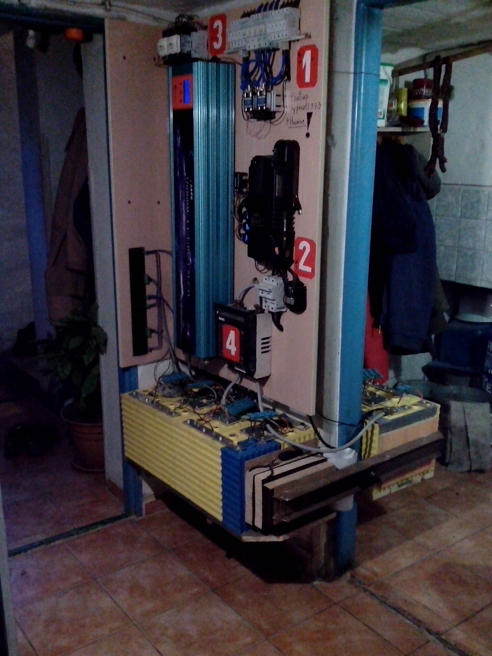 15 kWp JJZ + 3x Tristar MPPT60 + Victron 150/100 + 48V LiFePO 850 Ah + UPS 8kW (MPP-Solar 8048 LC) + 4 x nabíječka 1,2 kW (DELTA) Start: 2012
