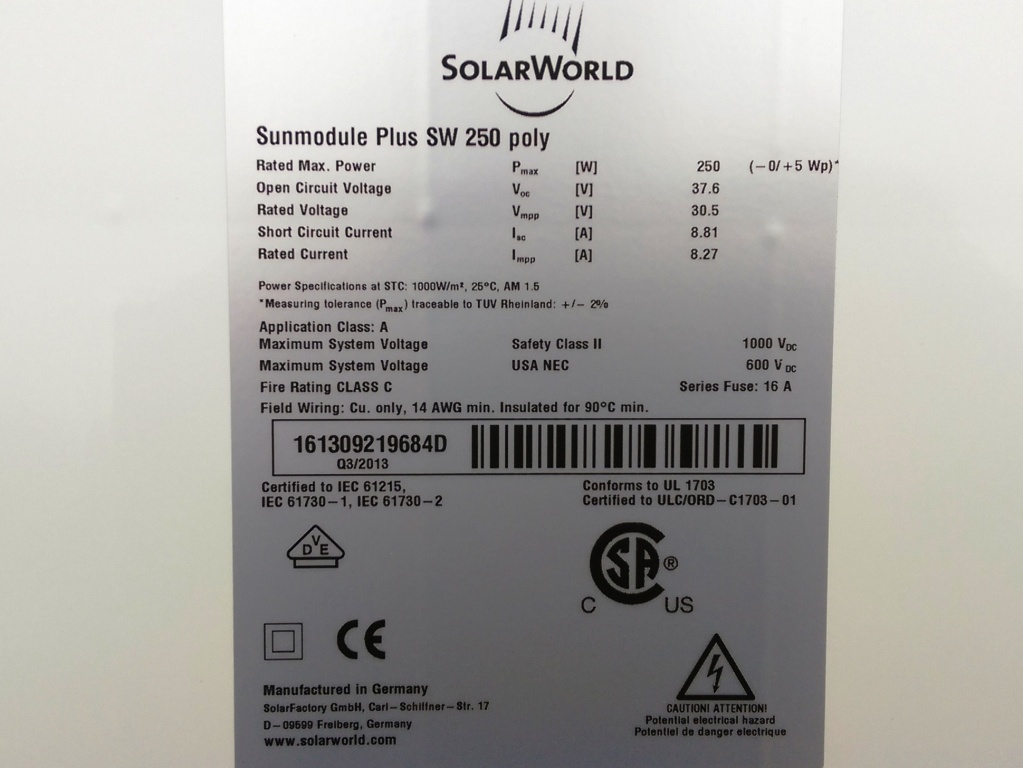 Re: Německé polykristalicke panely Sunmodule Plus SW 250
