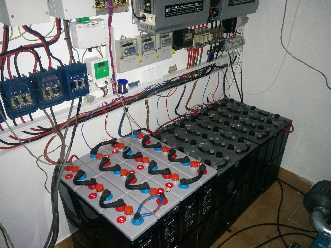24x Solární panel JINKO SOLAR 225 Pmpp=225W, 2x Regulátor STUDER VT-80, 2x Střídač Studer XTM 4000-48, BSP, RCC, 1x AKU 48V LFP200Ah 1x AKU 48 V LFP280Ah. Řizení a dohled, SDS, vlastní vyčítání arduinem DUE v krabičce (ARMOSY), export dat do RPi s databází a html stránkou.