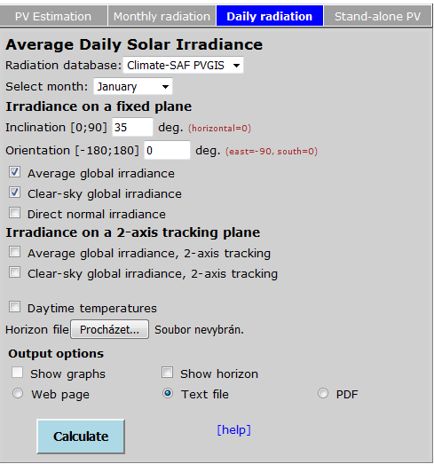 ti píšu: vybereš si "daily radiation" a tam potom máš tabulku s výkonem na m2 podle měsíce a hodiny ve dni, při zvoleném sklonu a azimutu.... proč nikdo nečte, co je už jednou napsaný?