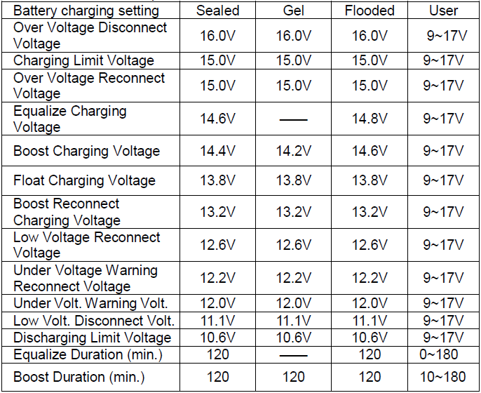 Constant Voltage(Over Charge Voltage) 13.0-15.5V(±0.2)12V/26.0-31.0V(±0.2)24V