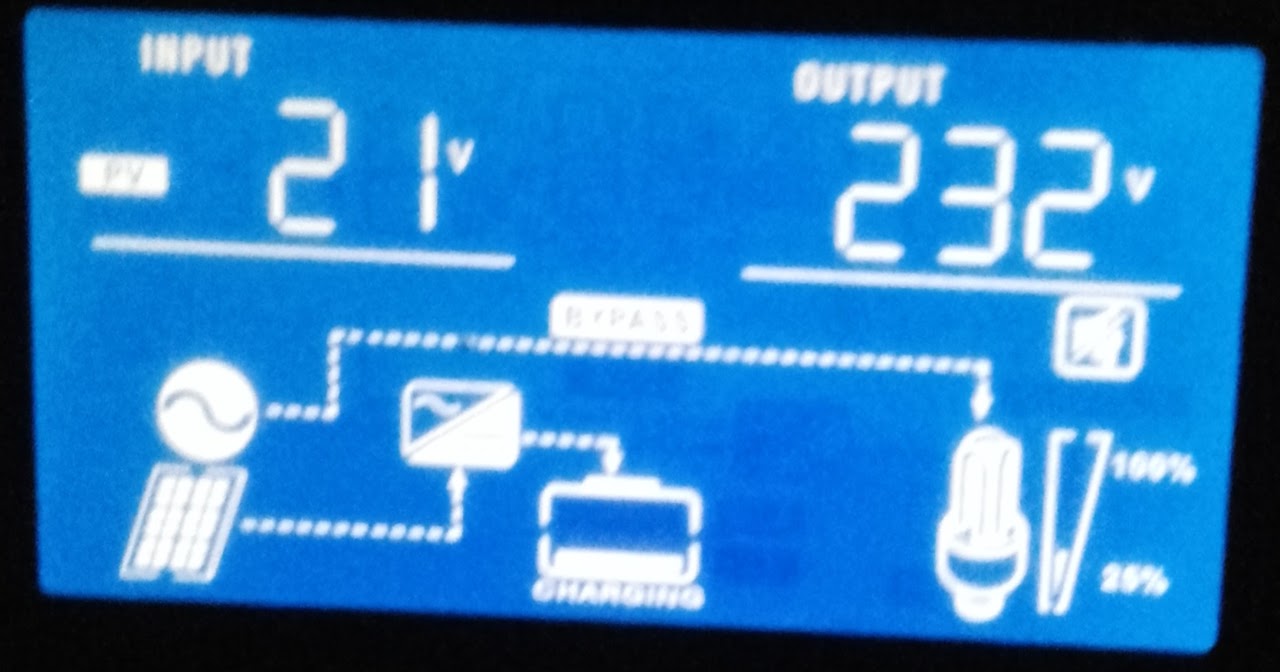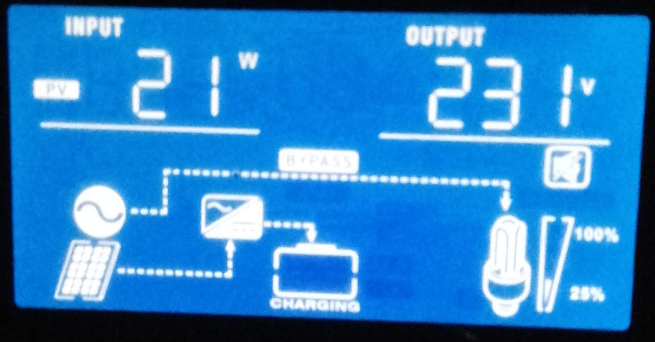Pokud je menic v tomhle stavu kdy se tvari jako ze nabiji a vypnu ho vypinacem a znovu zapnu, pak hned ukazuje ze je solar odpojenej. Tak jako se tomu stane kolem te pulnoci.