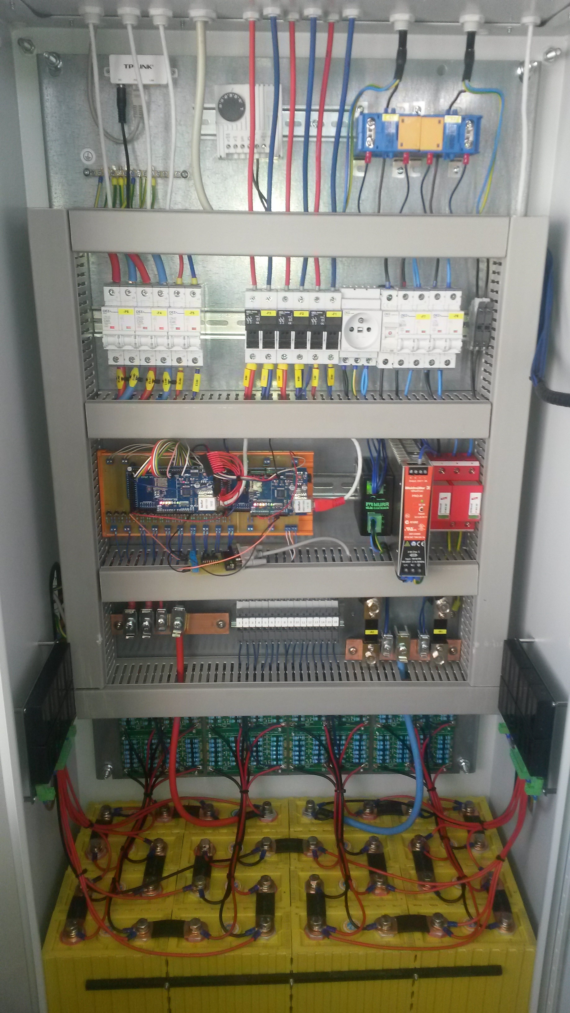 15 kWp JJZ + 3x Tristar MPPT60 + Victron 150/100 + 48V LiFePO 850 Ah + UPS 8kW (MPP-Solar 8048 LC) + 4 x nabíječka 1,2 kW (DELTA) Start: 2012