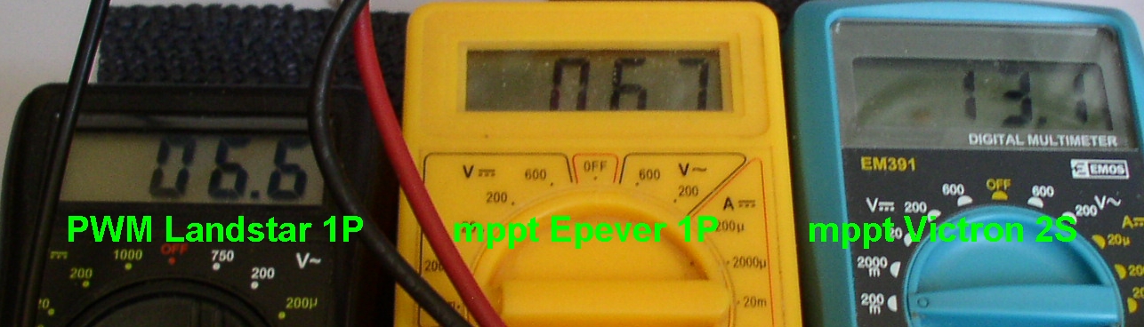 Môžem Vás uistiť, že na prahových hodnotách je na tom pwm lepšie, ako mppt. Asi tak v reláciach 0,3 / 0,2 A alebo 0,5/0,4 A. Merané multimetrom na bočníku, aj po zámene multimetrov. Ten menič treba niečím živiť , nebodaj ešte displej .... Je to o ničom, žiadne víťazstvo ani prehra.
