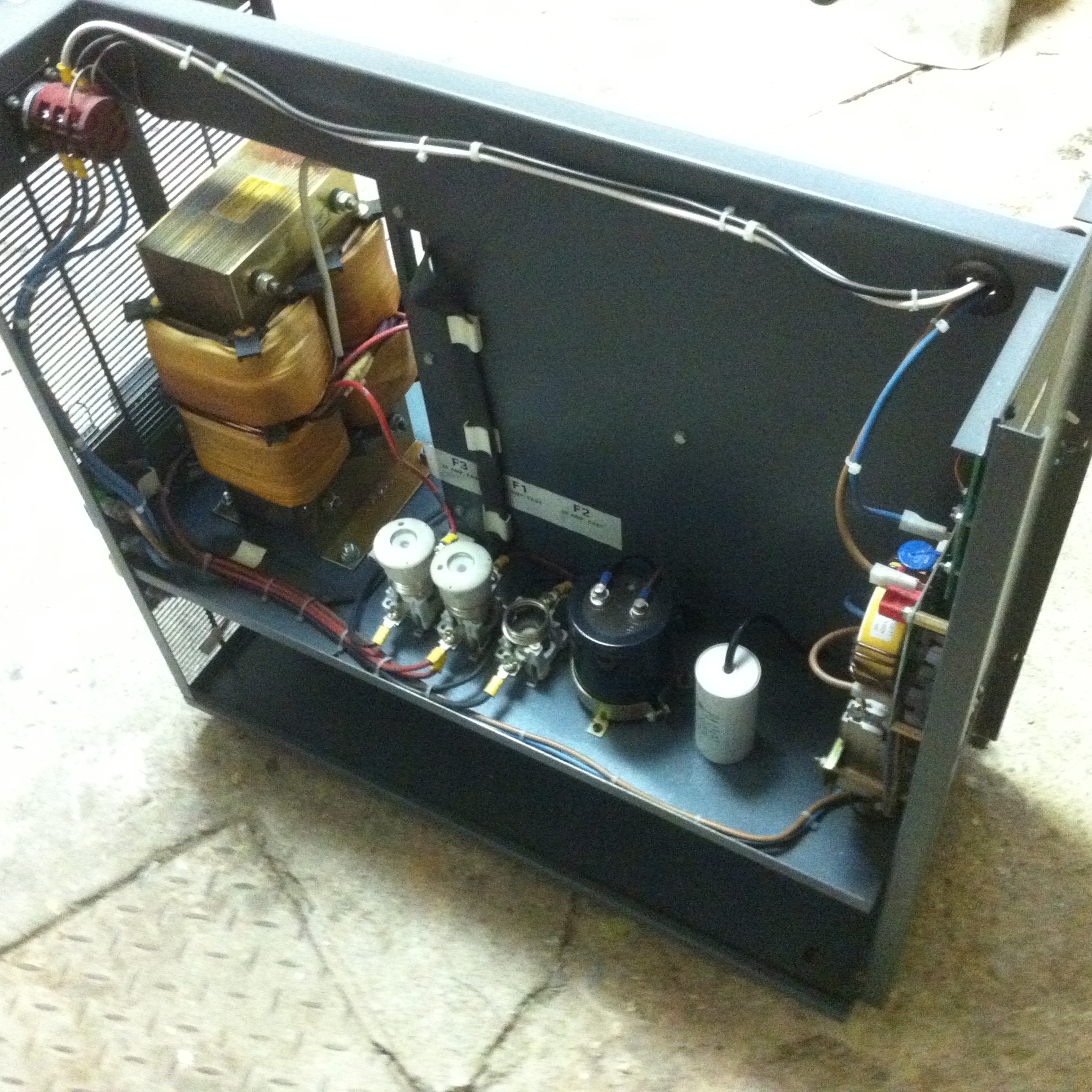Masivní trafo na C jádru (to je "hranatý toroid"), dimenzované na skutečných 5kW trvalých bez větráku.