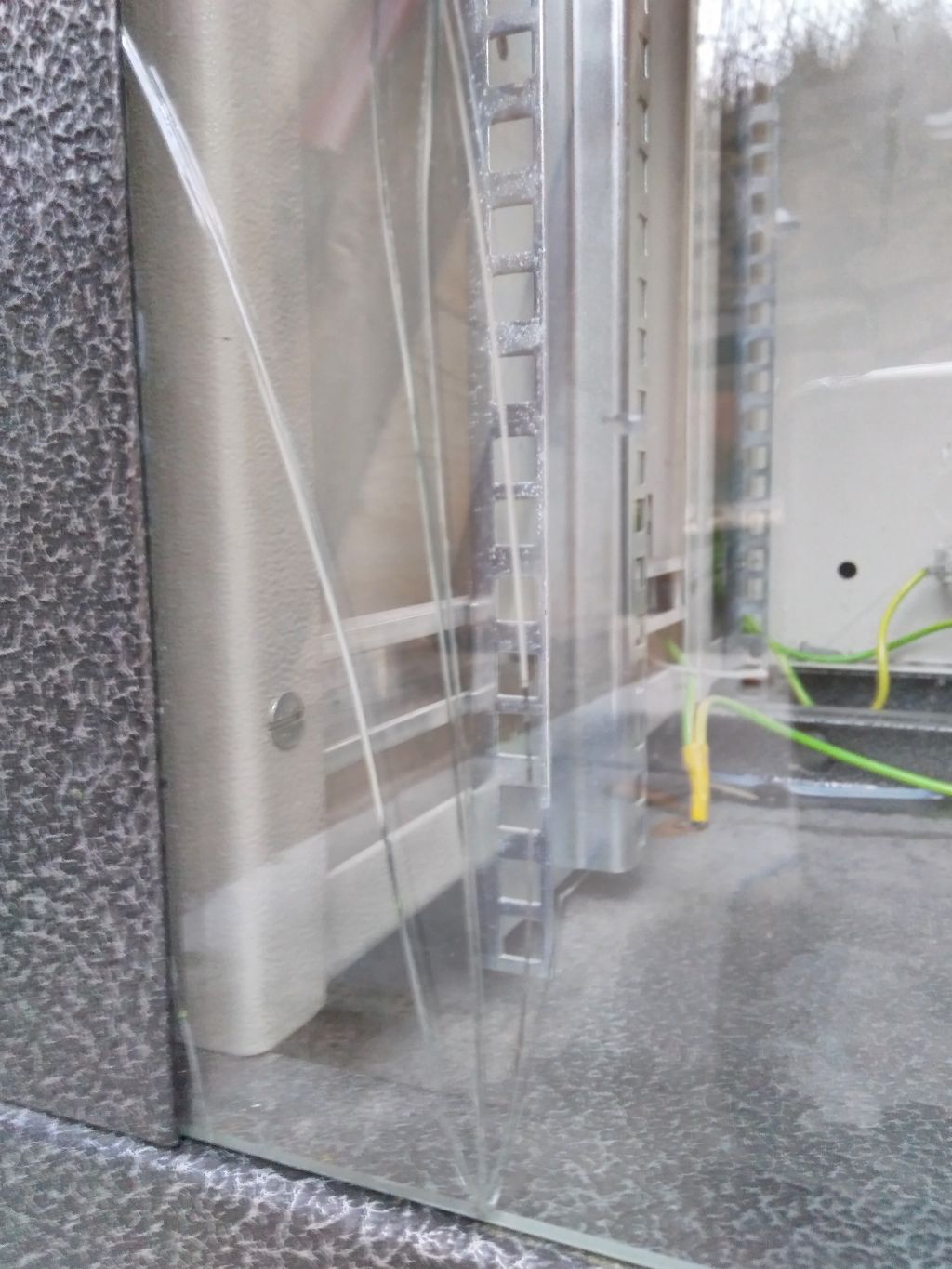 Nabízím k prodeji nástěnný rack s možností otevírání z boku i zepředu, vhodný pro bezpečné uložení elektroniky. Čelní sklo je dvojvrstvé a lepené, i přes prasklinu je stále funkční. Rack je k dispozici v Brně a okolí za cenu 1200 až 1500 Kč, vhodný pro montáž na zeď.