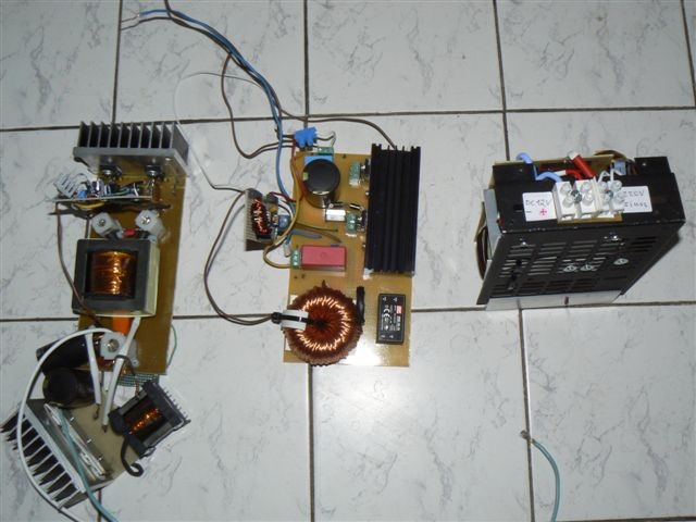 Uplně vpravo je můj vlastní první 12V školní čistý sinus měnič – galvanicky oddělený
