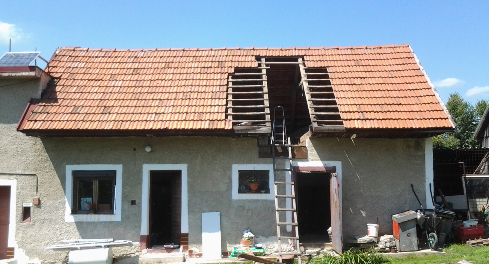 Doma padlo rozhodnutie na prerabku solarok a odstranenie plechovej striešky,teda ak sa neseknem tak sa to vola vykier.Tu hla foto po demontovani.Bolo asi 100 celzia,do večera padlo 10L vody Ja sam som sa z tym pučil a skončil večer o 22:00 tak druhu fotku som cvakol až dneska rano.Momentalne dom ide na energiu z baterie a mini panelov ktore som ponechal na svojom mieste,teda asi 200Wp.