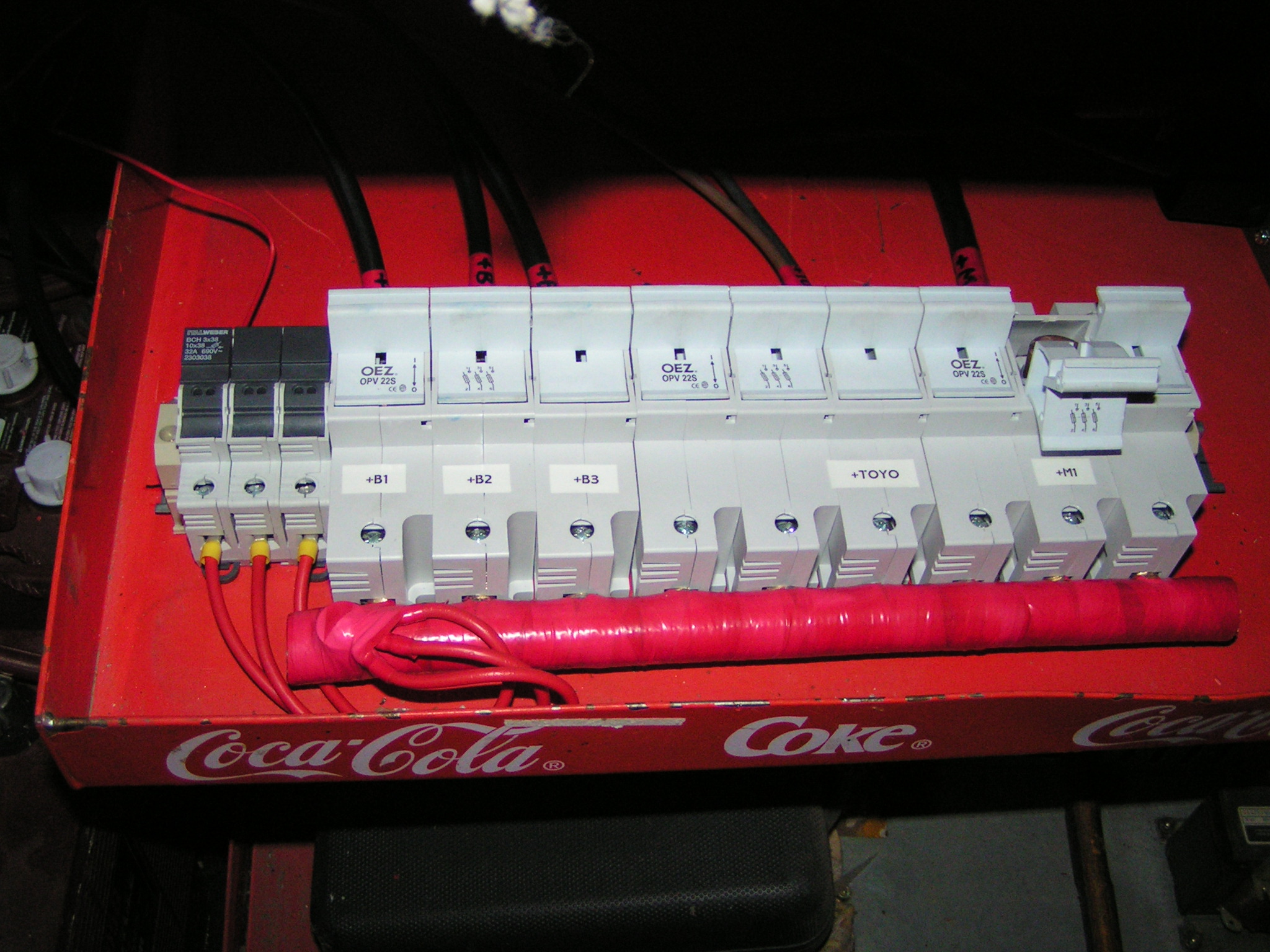 Jenže problém baterek je v těch obrovských proudech, tím šroubovákem teklo cca 360A, navíc při odběru z baterií kolem 3000W - pračka, počítač, televize těma drátama protéká 125A, jak tohle jistit?, zatím mám pojistky 63A mezi regulátorem a baterkama ale mezi baterkama a měničem ne. Musím je pořádně zakrytovat. Tohle je asi největší nebezpečí FV.