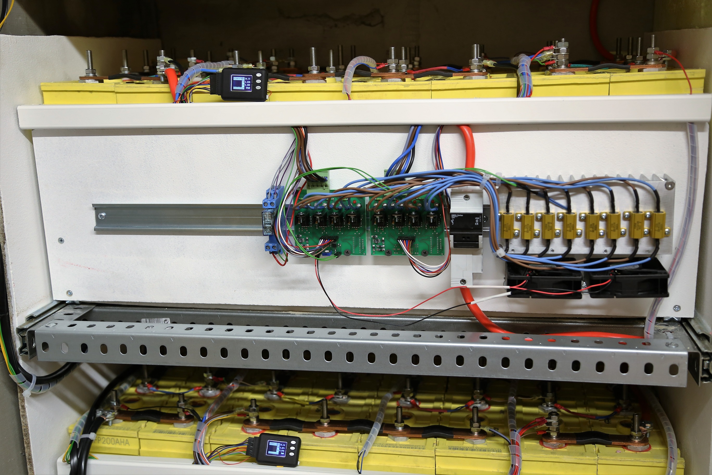 Pěkná práce. Já dal baterky do regálu a když něco chci v tom prostředním, tak musím vystavět "pokračování" regálu a vytáhnout je na ně, tohle je jistě přístupnější, akorát ten železnej profil profil co se vysunuje nad baterkama... Tam bych pro jistotu nalepil aspoň kaptonovou pásku, pertinax nebo tak něco.