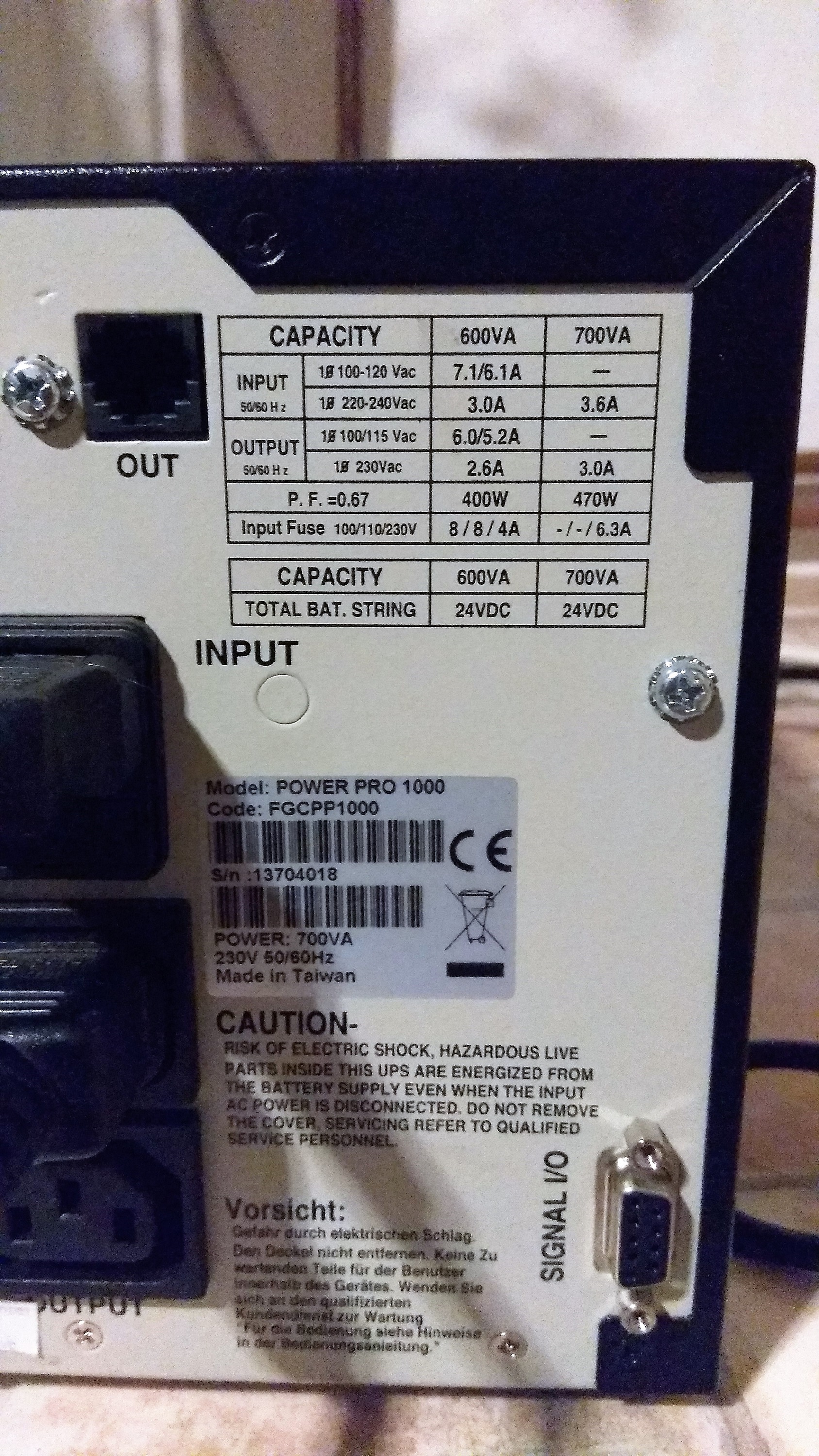 JE NA 24v, VÝKON 700VA, NA VÝSTUPU JE SÍŤOVÝ TRANSFORMÁTOR. BATERIE UVNITŘ UŽ MAJÍ MALOU KAPACITU. CENA 4000KČ. TEL:605943077