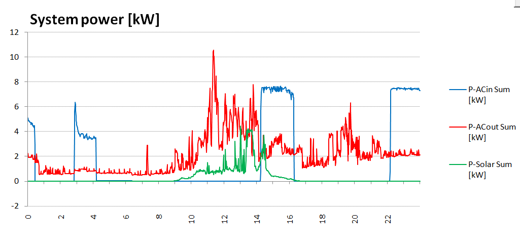 Ještě jeden den a to 31.12.2018 Podle mě největší test elektrárny.Pojistky na baterce mám 200A.V jeden okamžik tedy na hranici.