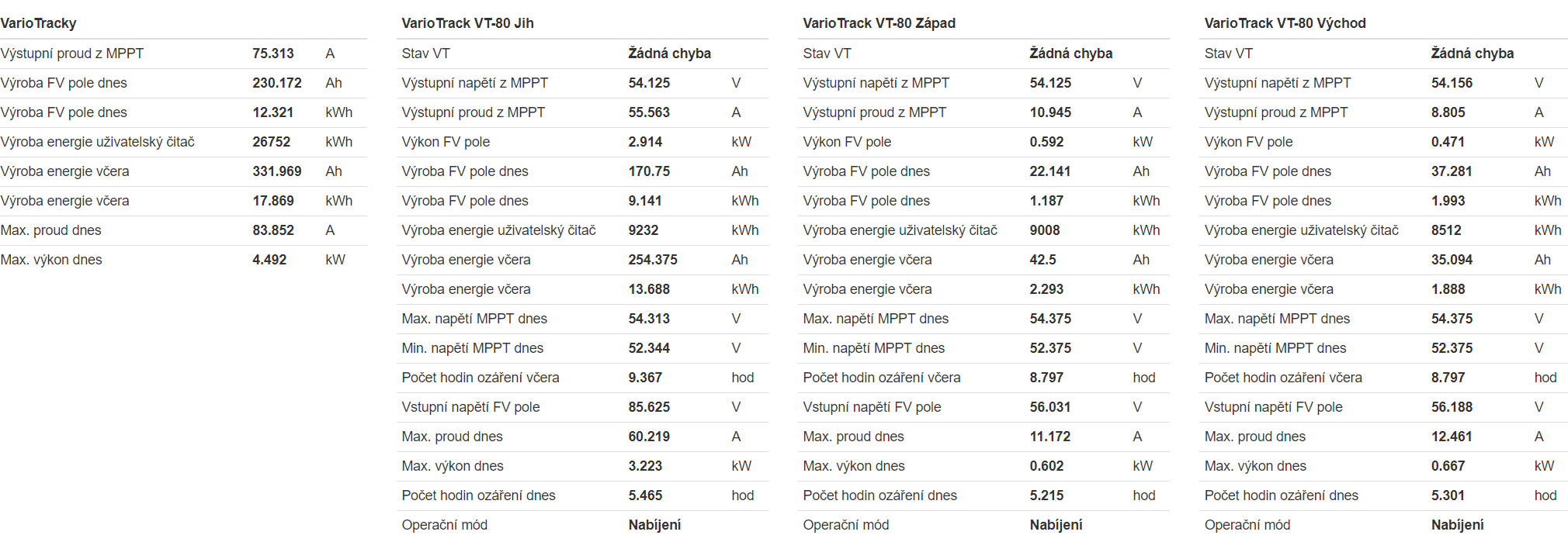 SOLINTEG MHT-50K-100, východ střecha 14,5Kwp,jižní stěna 6,3 Kwp,západ střecha 15,5Kwp, chalupa Majda 7,6 Kwp. Baterie 30 ks Pylontech H48050 72 Kw ,optimizéry Tigo.