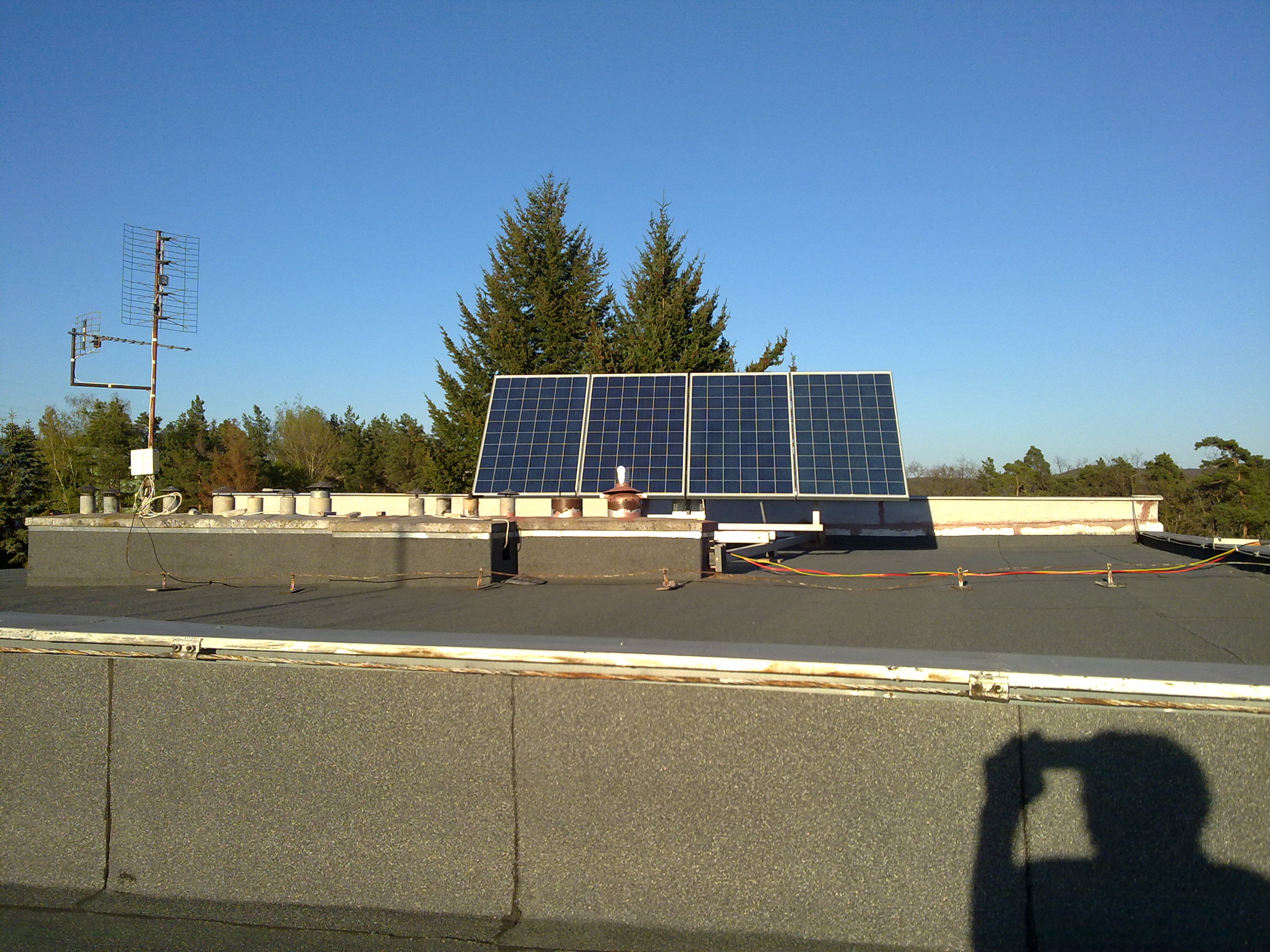 Po pár mesiacoch prevádzky vďaka tomuto fóru chcem odprezentovať moju FVE.Zo začiatku som to bral ako zábavku a ono to začalo na seba aj zarábať.Zatial je to stále v štádiu testovania čiže aj zapojenia a komponenty nie sú konečné . Mono panely sú na dvojosom sledovači .Dobré rozhodnutie ale maturita kým som ho vymyslel a vyrobil.Zle otočený dom neumožnil dať panely na strechu.Slnko ich osvetluje od 8.30 do večera.Tracker to zameškané ráno cez deň dobehne.