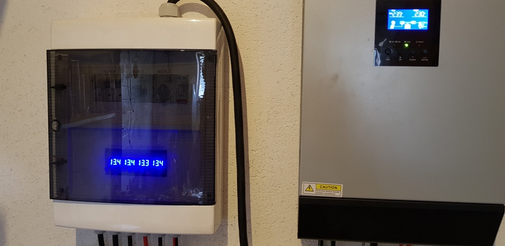 Vím že kapacita mích aku je k tomuto meniči malá ale nemám jestě hotové rozvody a odběr mi nepřesahuje 500VA (zatím zapojeno jen na osvětlení)