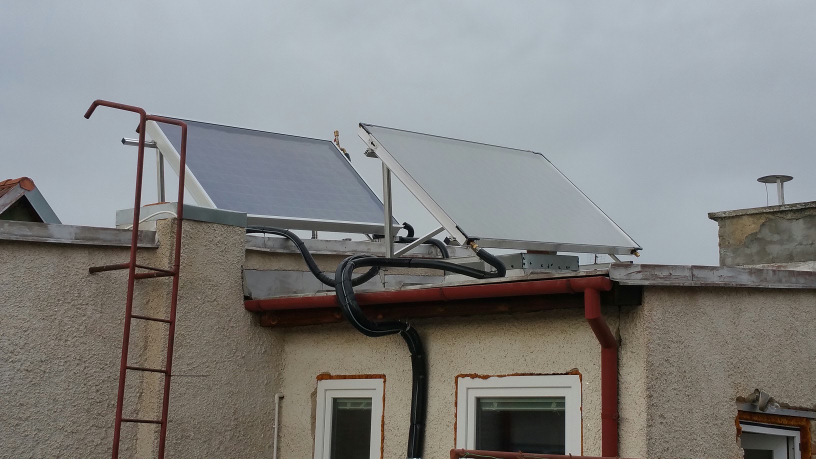 Tak jsem zatím nainstaloval fototermické. Dva panely natopi 300l bojler na 75°C. Přes noc dávám vychladit.