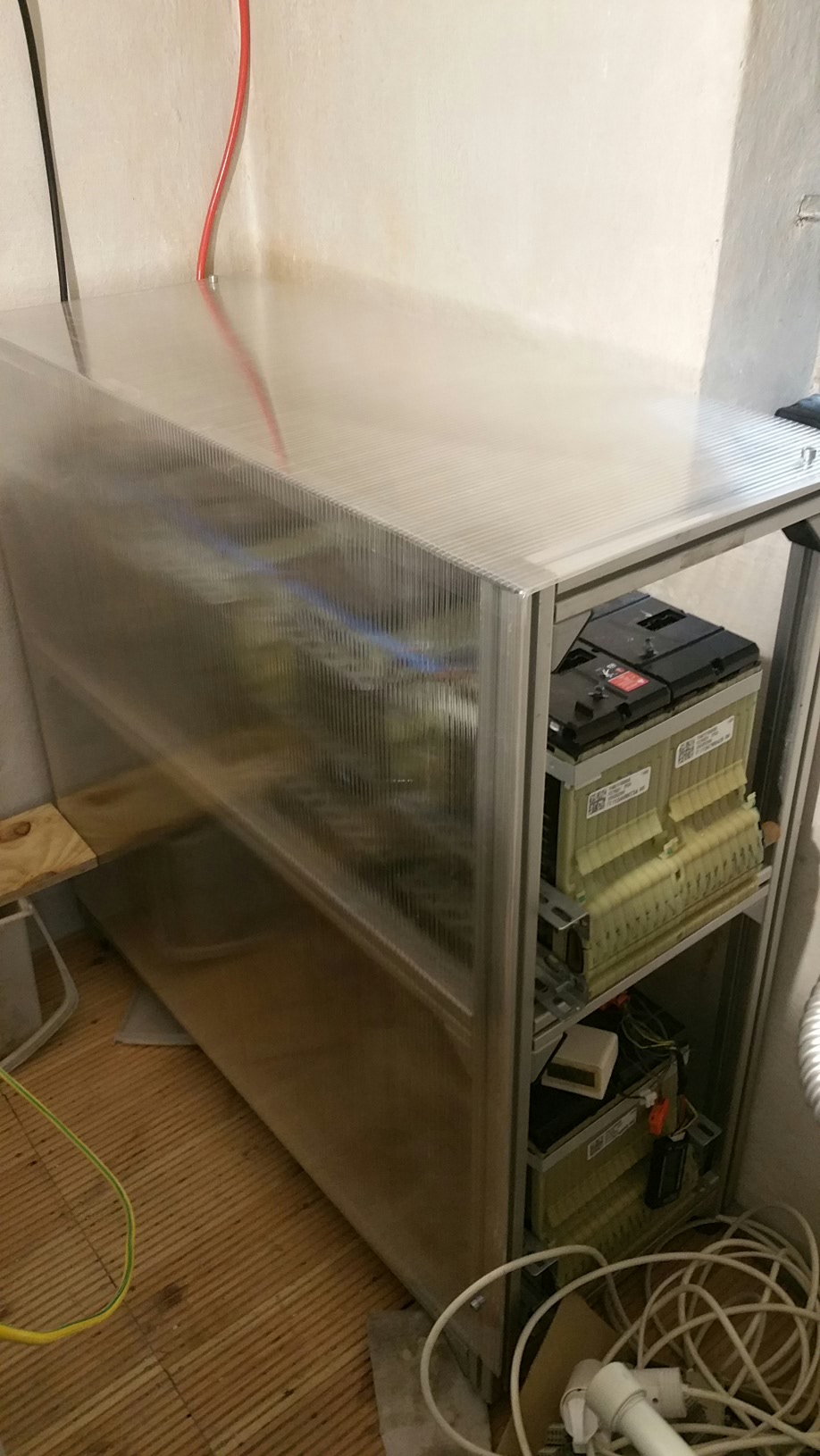15 kWp JJZ + 3x Tristar MPPT60 + Victron 150/100 + 48V LiFePO 850 Ah + UPS 8kW (MPP-Solar 8048 LC) + 4 x nabíječka 1,2 kW (DELTA) Start: 2012