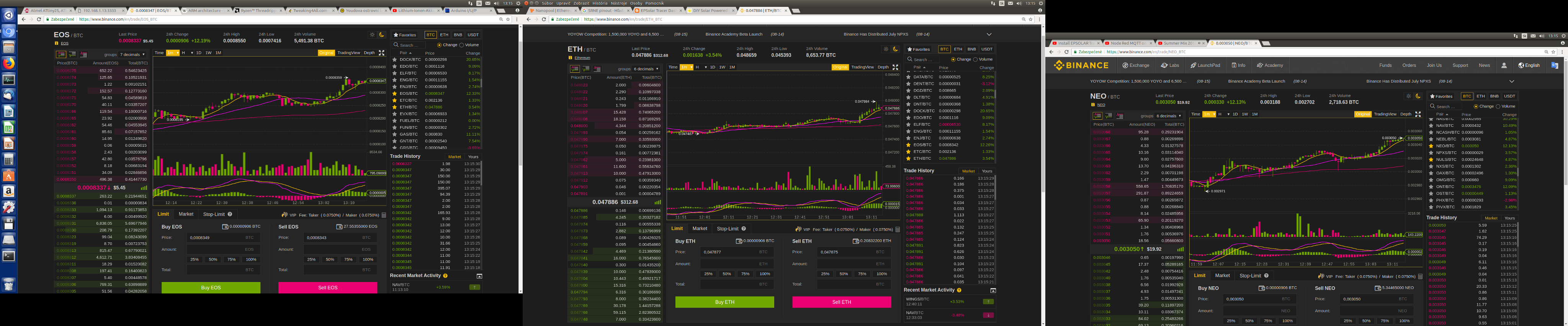 Ťažím XMR a ETH, podĹa toho, akú teplotu v izbách potrebujem a koľko výkonu mám práve z panelov.