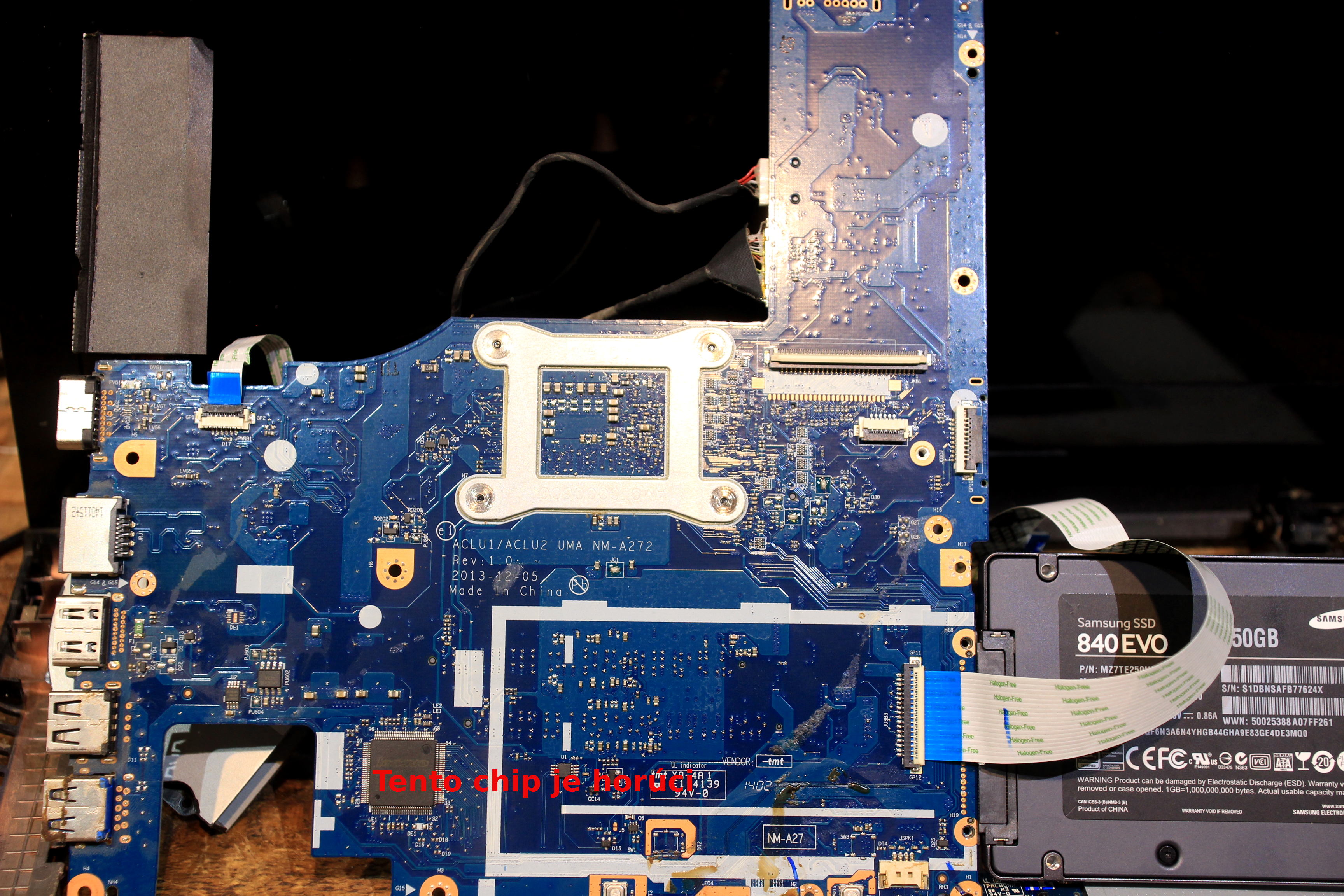 Ten horúci chip je OK, lebo práve ON vypne NB, len mi nie je jasné z akej príčiny.